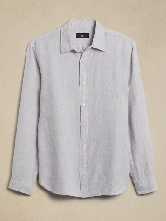 STANDARD-FIT TEXTURE-STRIPE LINEN SHIRT