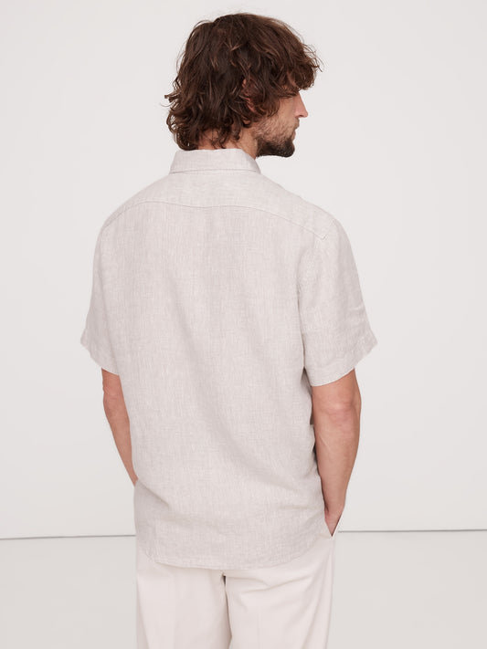 قميص كتان بأكمام قصيرة ومقاس قياسي