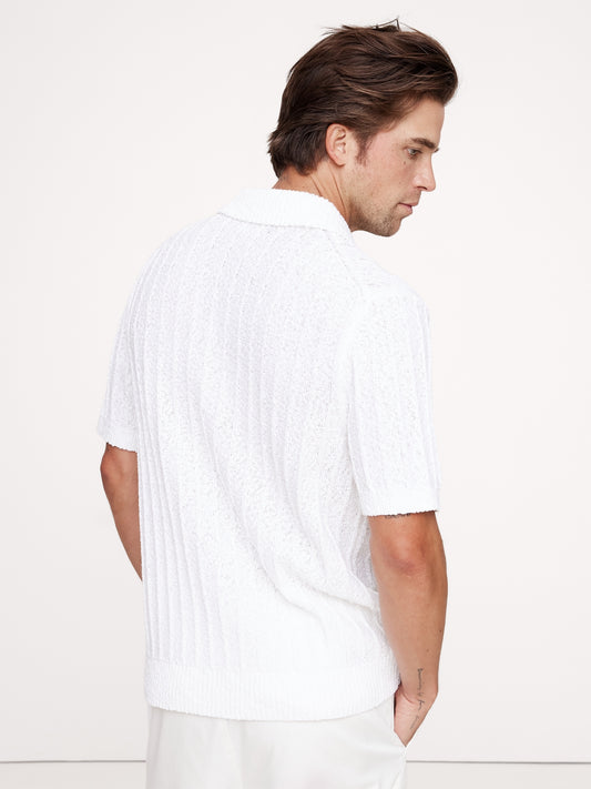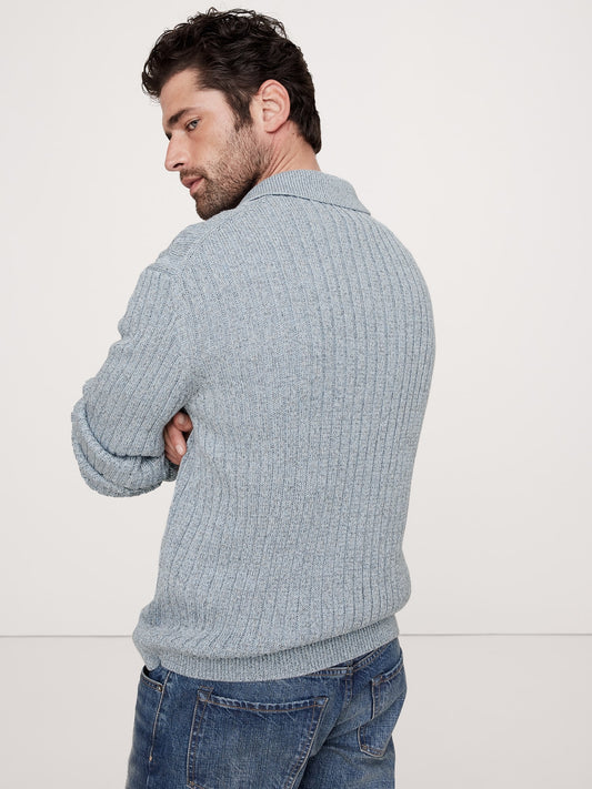 COTTON-LINEN JOHNNY-COLLAR SWEATER POLO