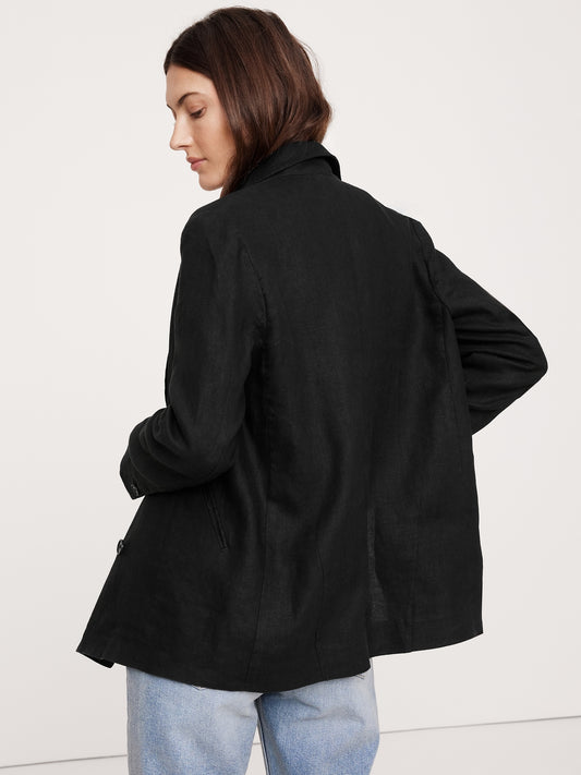 سترة بليزر كتان مريحة مزدوجة الصدر