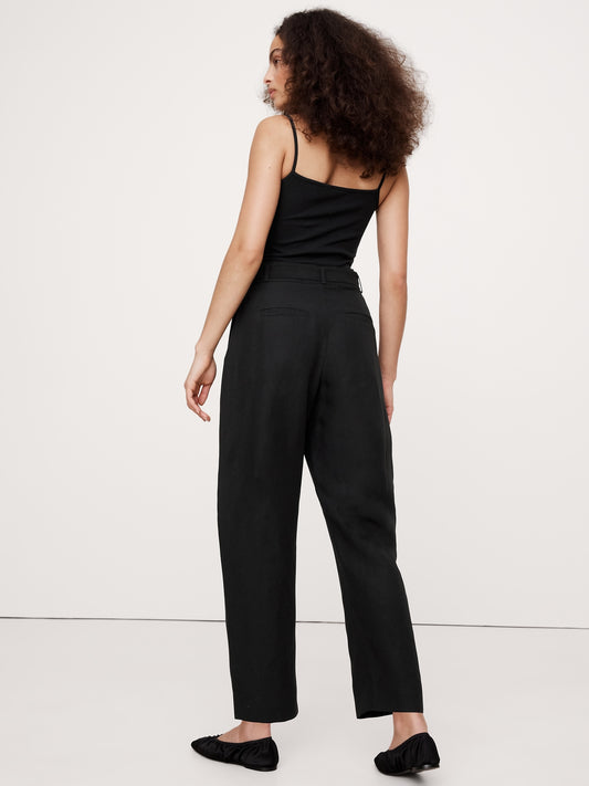 HIGH-RISE WIDE-LEG LINEN PULL-ON ANKLE PANT