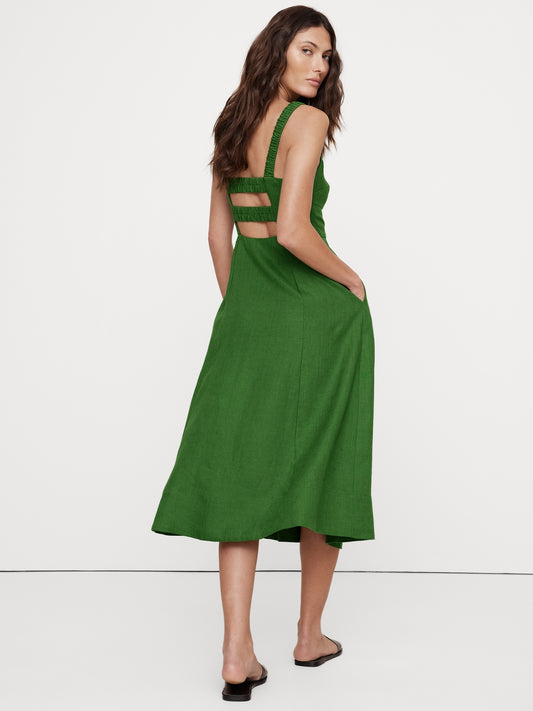 فستان ماكسي كتان بفتحة ياقة على شكل حرف V