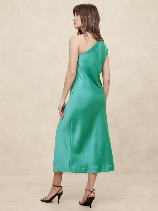 فستان ميدي ساتان بكتف واحد