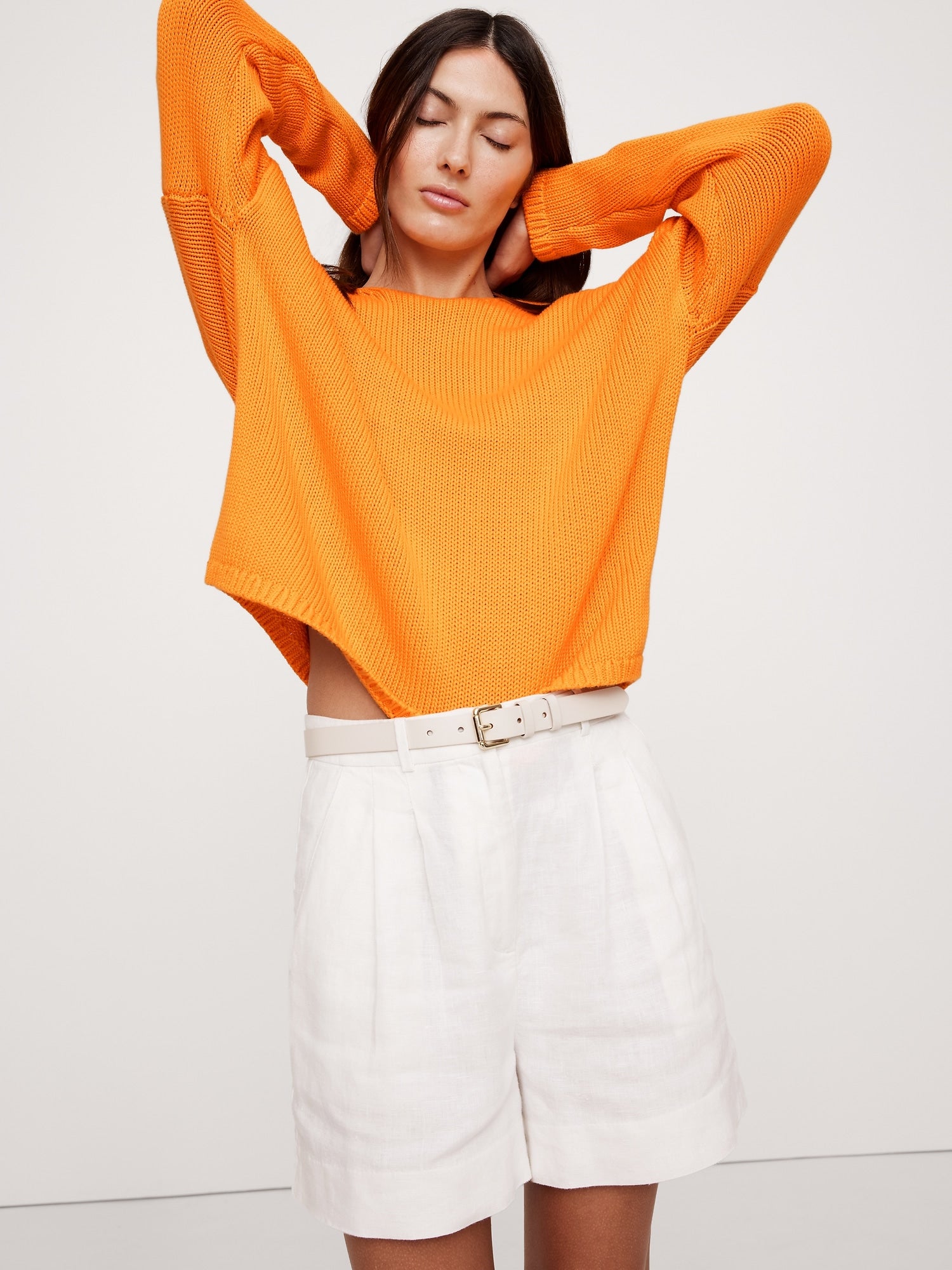 لقد صممنا هذا السترة ذات الظهر المجوف لتبهر كل المواسم من خلال قصها بقصة مريحة مع حاشية دائرية عالية ومنخفضة. بالنسبة للمواد، اخترنا غزلًا جميلًا مصنوعًا من القطن القابل للتنفس والحرير الناعم الفاخر.