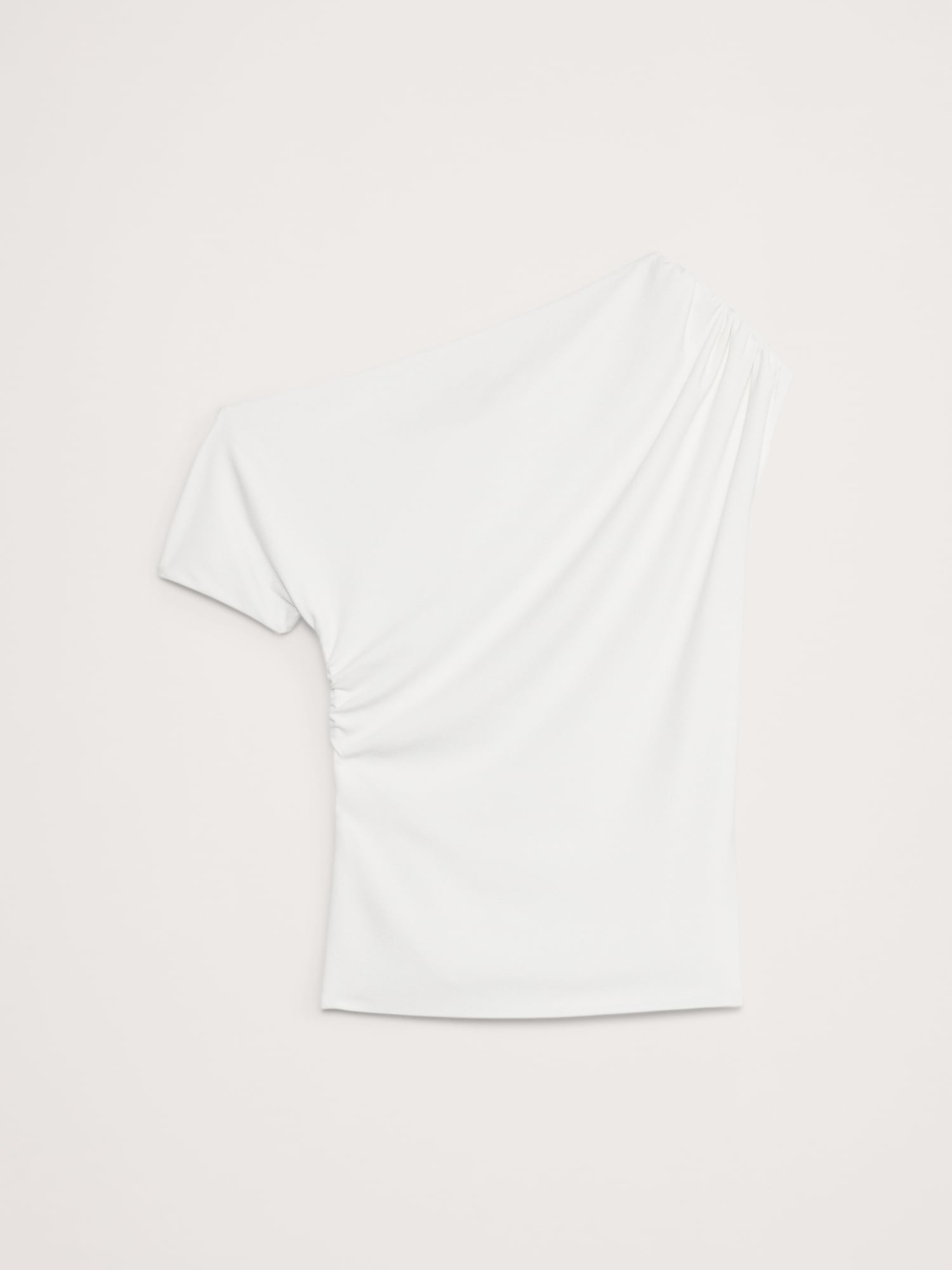 One of our favorite tops to style, this asymmetrical top has an off-shoulder neckline, crafted in our softest stretch jersey—beloved for its smooth finish.