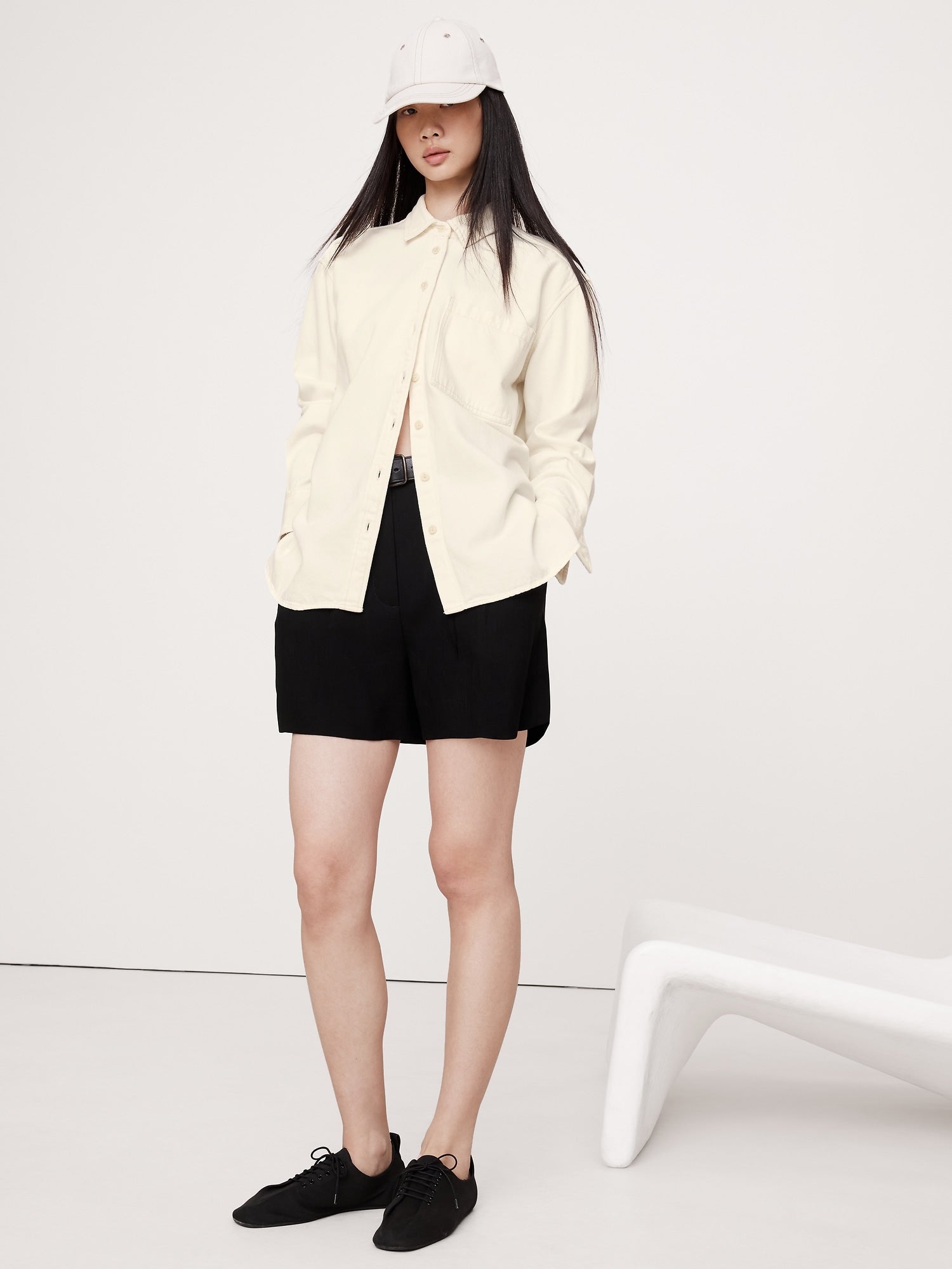 قميصنا الأكثر مبيعًا، مصنوع من قماش دينم قطني فاخر 100%، أثقل قليلًا من قماش الشامبراي، ومغسول لمزيد من النعومة. تركنا الجزء الداخلي بدون بطانة، لتتمكن من ارتدائه كقميص أو كسترة في الطقس البارد.