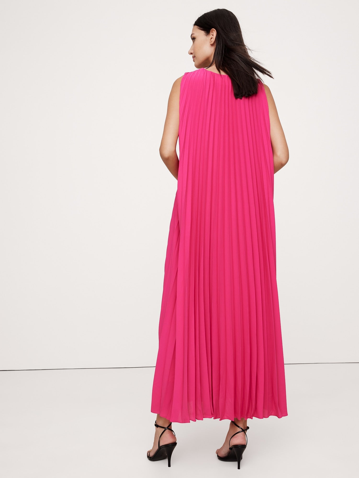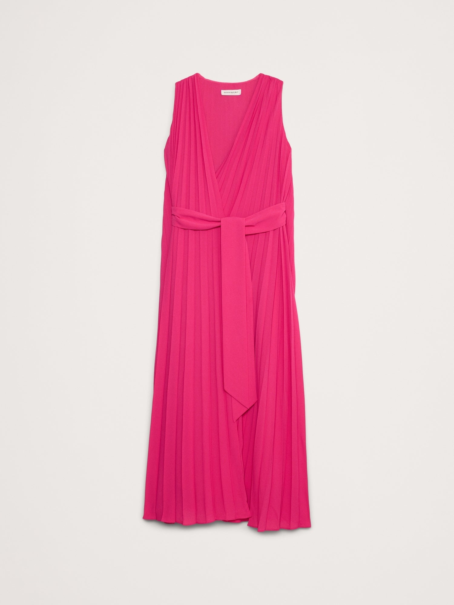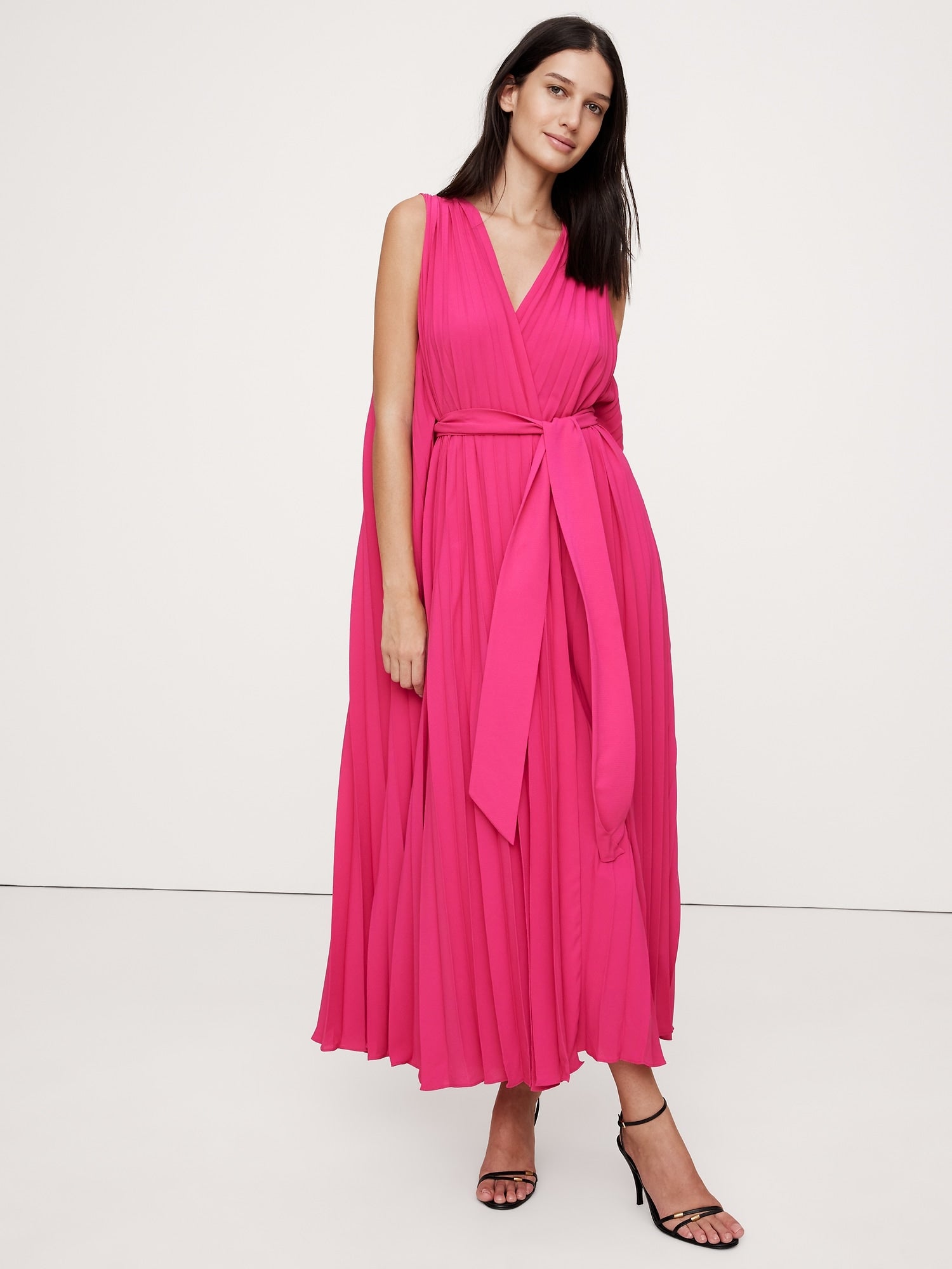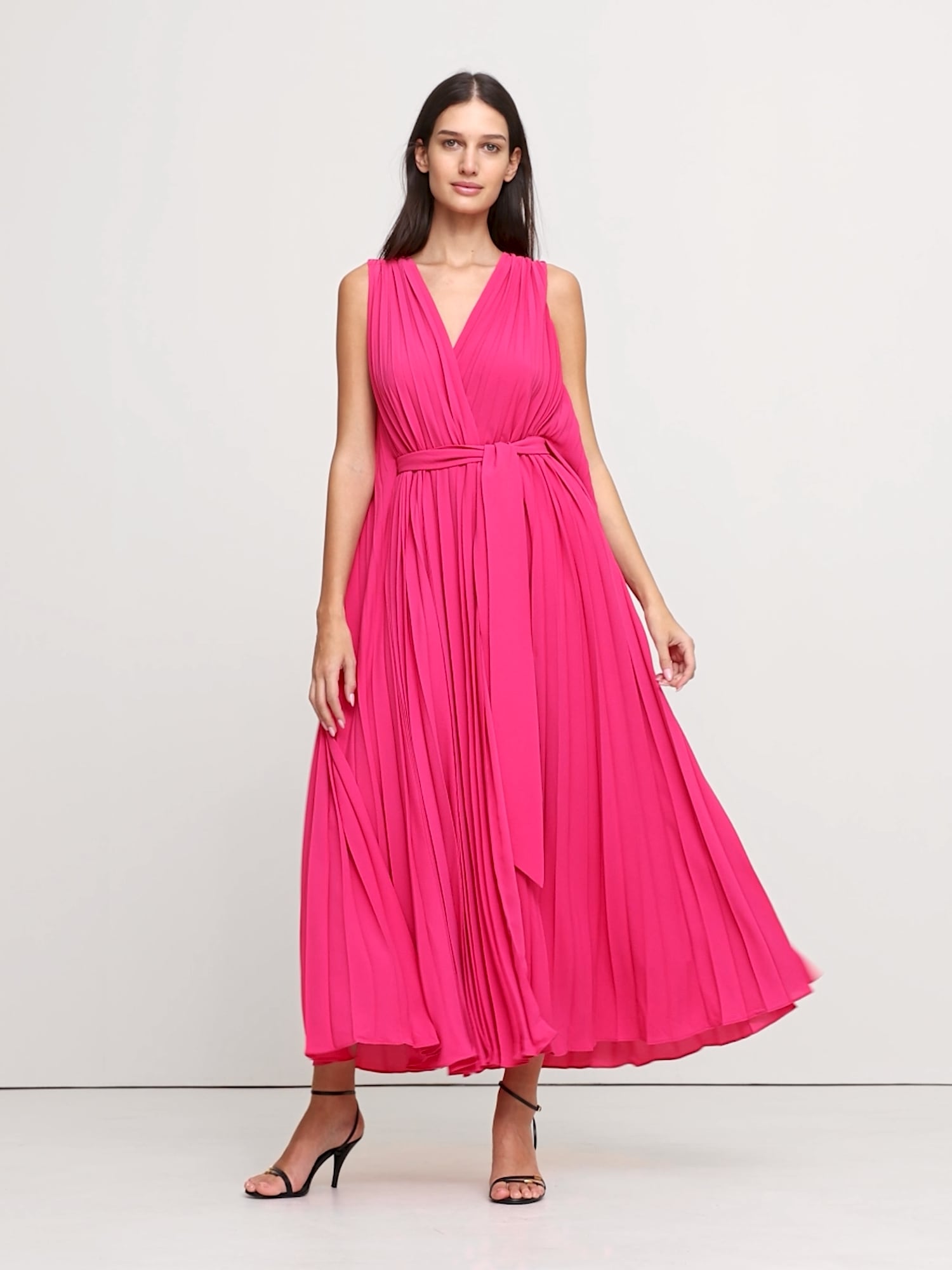 فستان ماكسي من الكريب المطوي، يتميز برباط عند الخصر وتفاصيل عباءة مطوية في الخلف. هل ذكرنا أنه يحتوي على جيوب؟