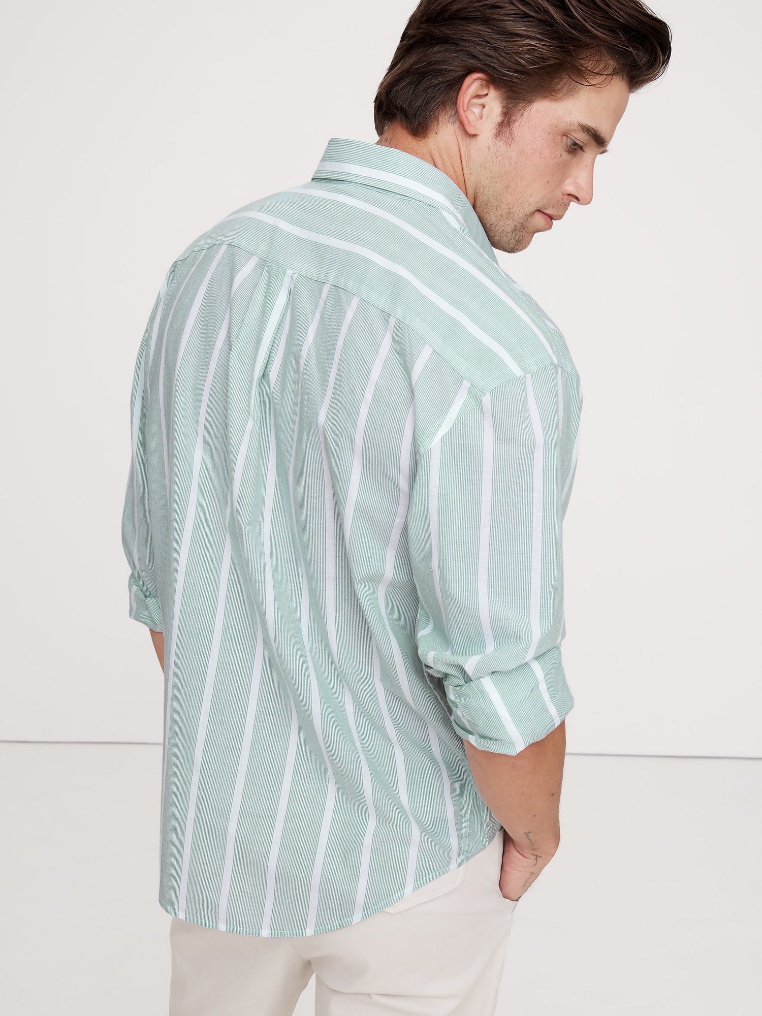 مثالي للطقس الدافئ (أو لمن يعانون من الحر الشديد)، هذا القميص ذو القصّة المريحة مصنوع من قماش البوبلين القطني الأخف لدينا.