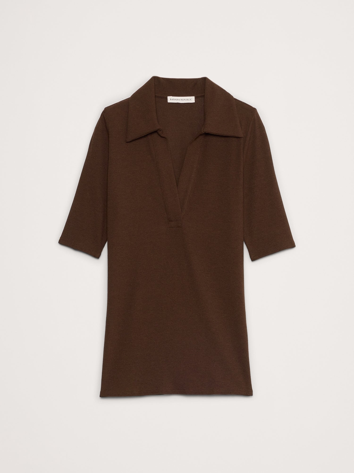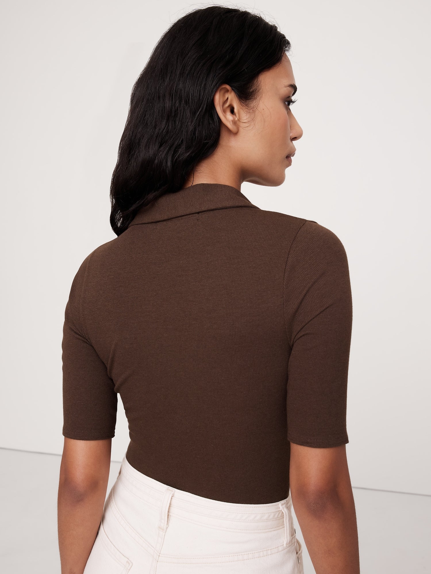 تعرّف على قميص البولو البسيط الذي سنرتديه طوال العام. نعشق قماشه الناعم المضلع، وياقة البولو بدون أزرار، وقصته التي تُبرز جمال الجسم.