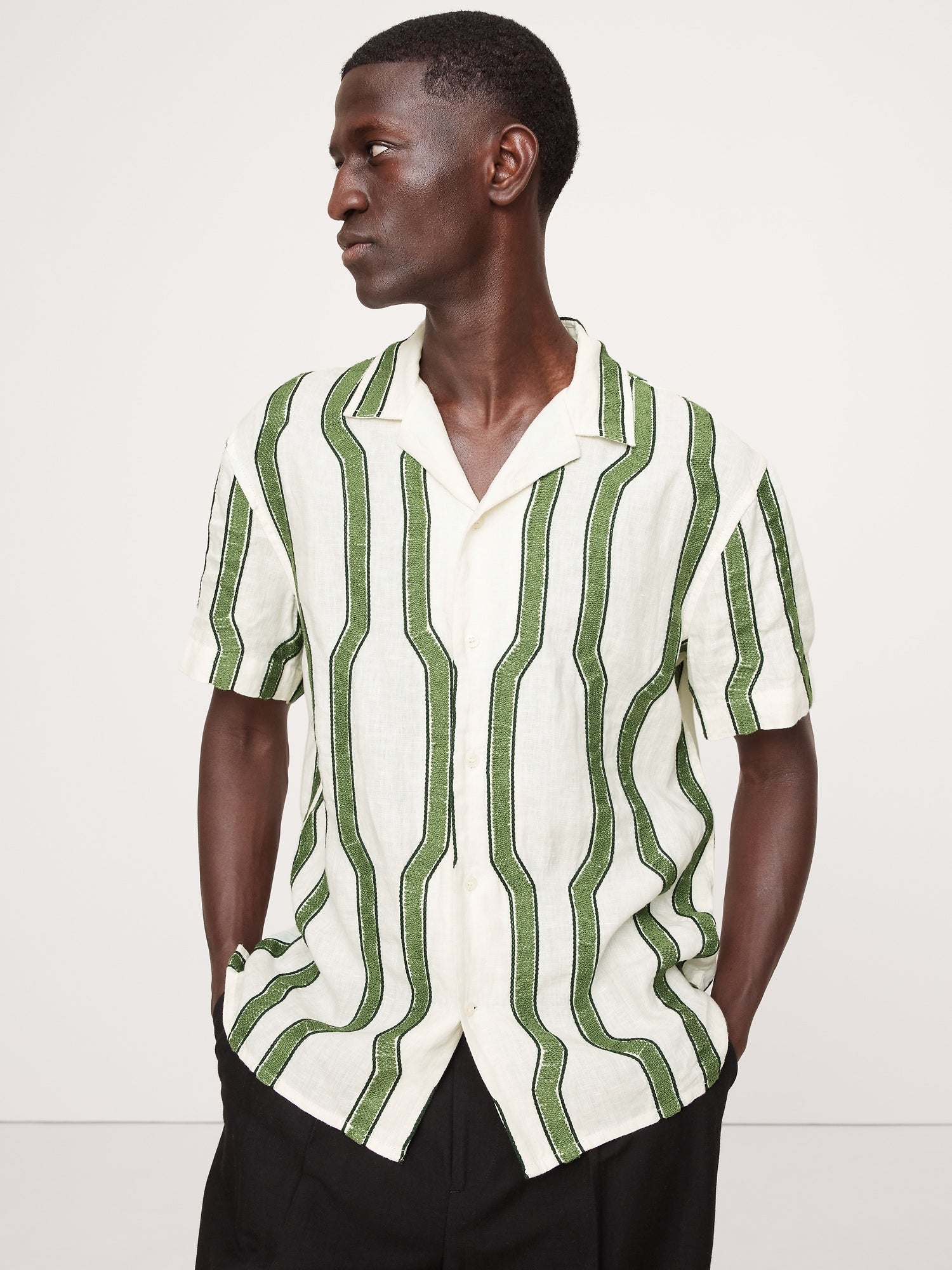 قميص ريزورت كتان مطرز بمقاس قياسي