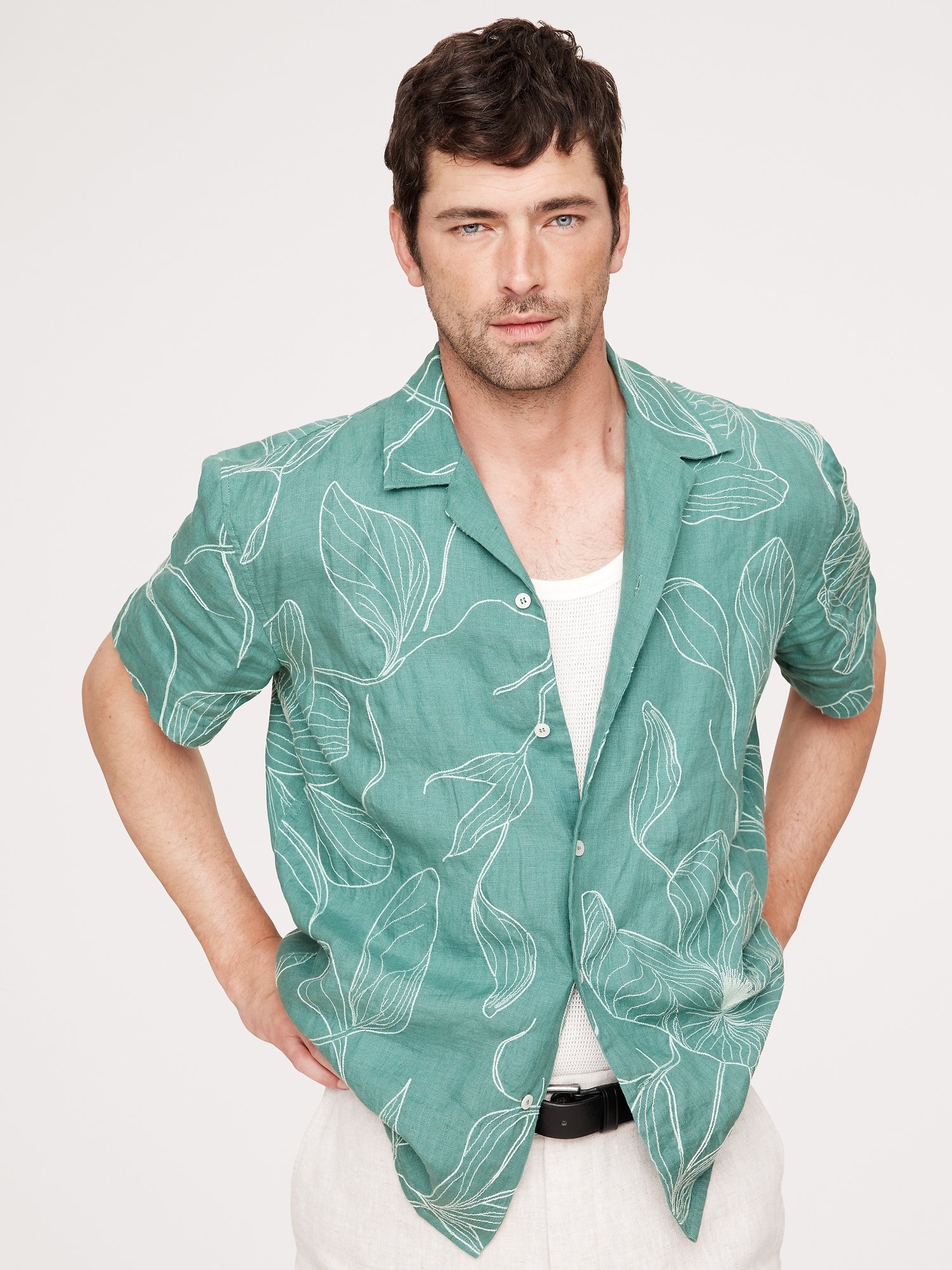 قميص ريزورت كتان مطرز بمقاس قياسي