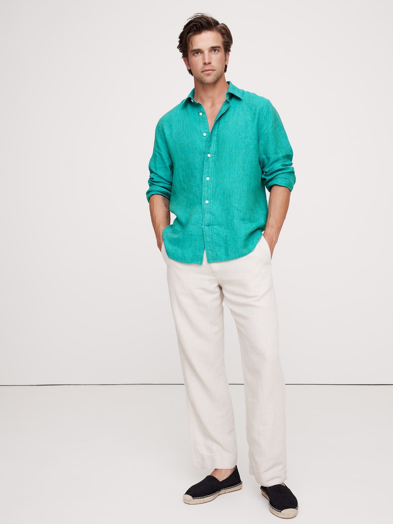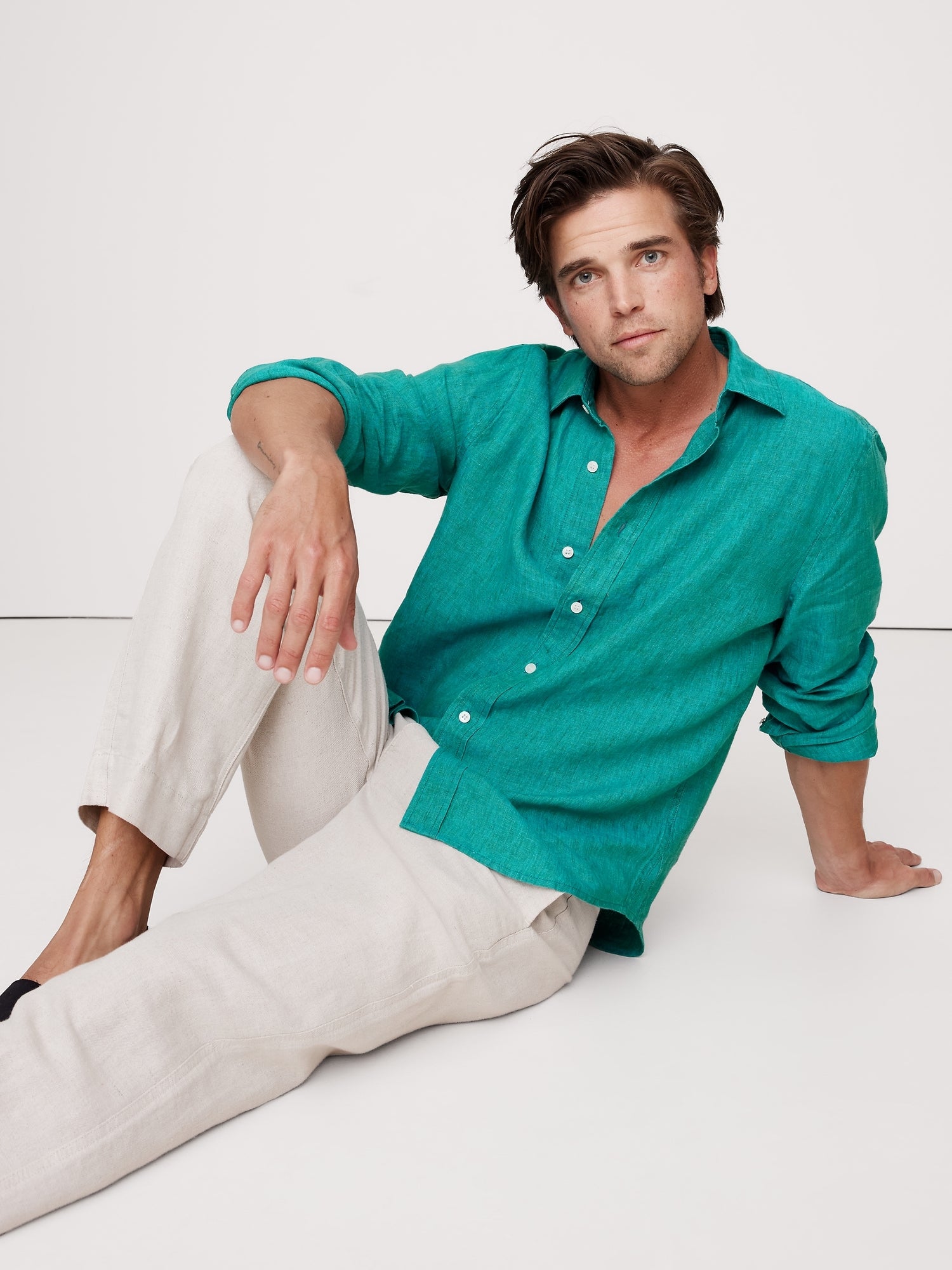 مصنوع من كتان أوروبي معتمد 100%، تمامًا كما نحبه. حافظنا على بساطة تصميم هذا القميص طويل الأكمام واخترنا ياقة كلاسيكية مدببة.