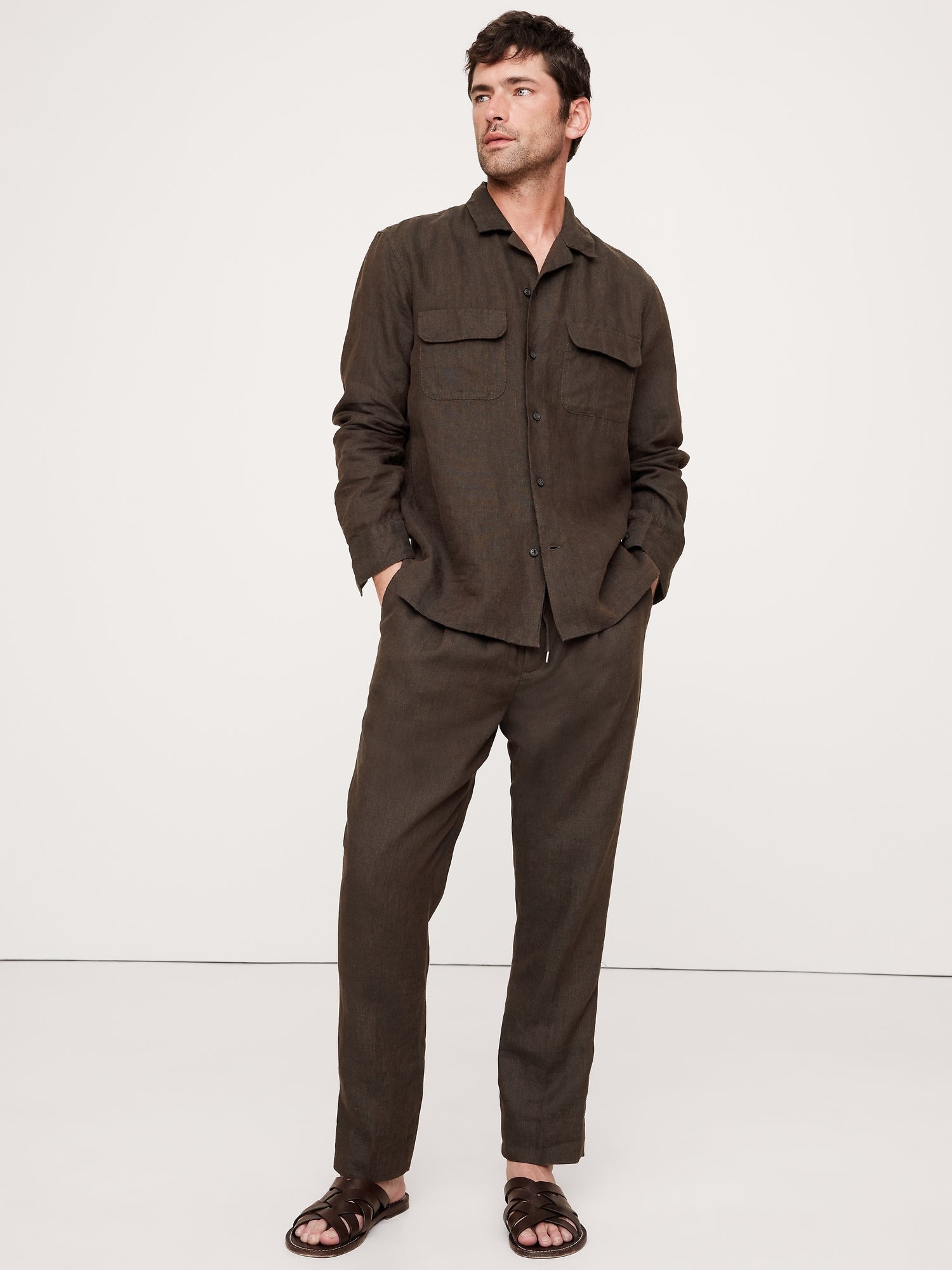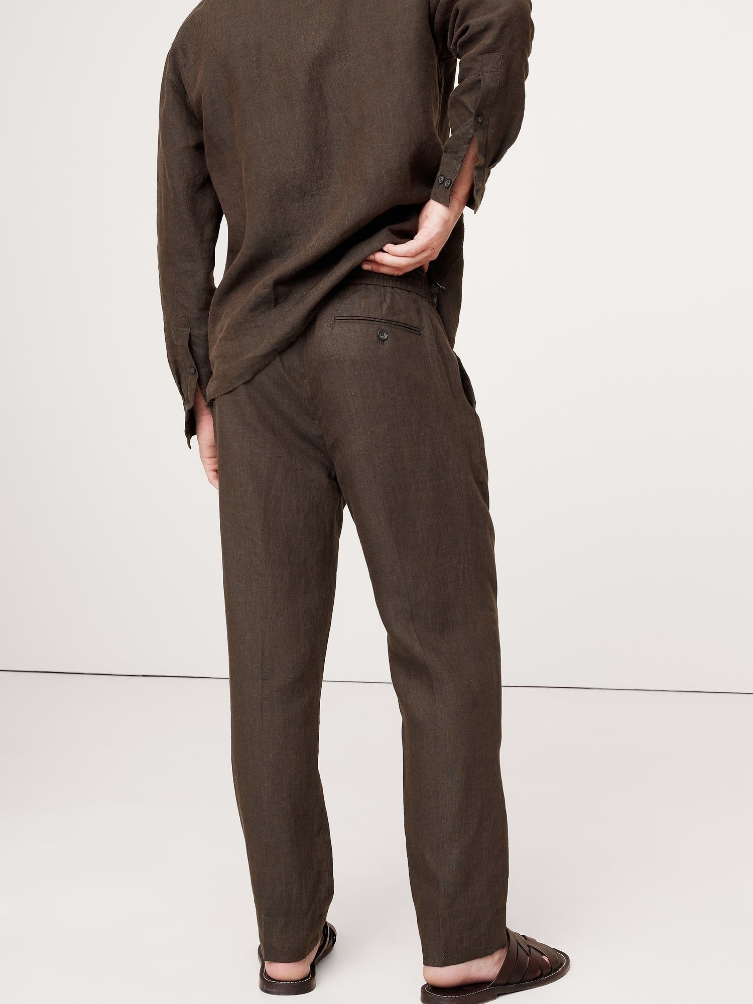 بتصميم مريح، حافظنا على سهولة مقاس هذا البنطال وأضفنا ثنية صغيرة وطية للبنطال. مصنوع من الكتان 100%، كما نحبه تمامًا.