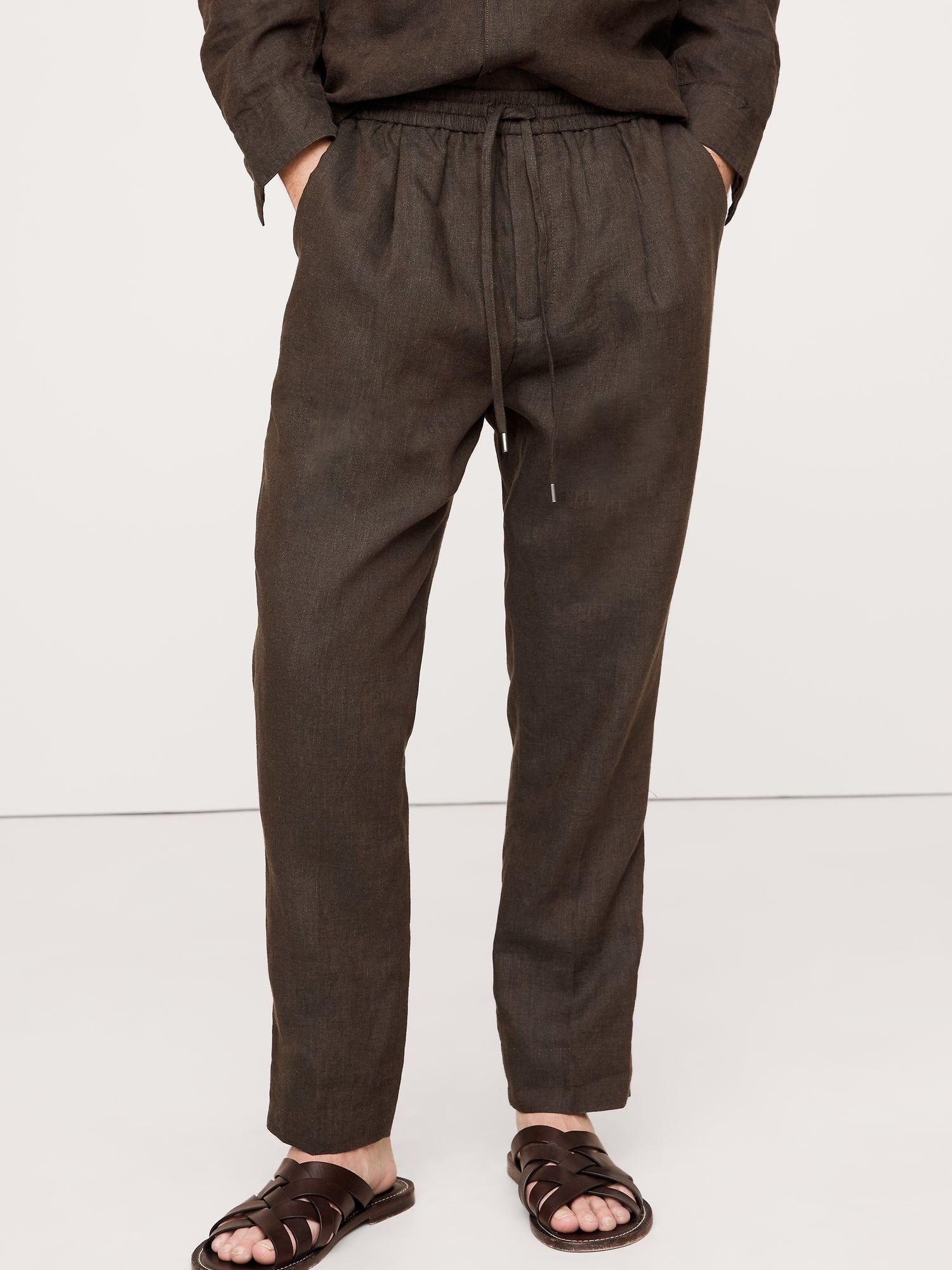 بنطال كتان بقصّة ساق مستقيمة سهل الارتداء