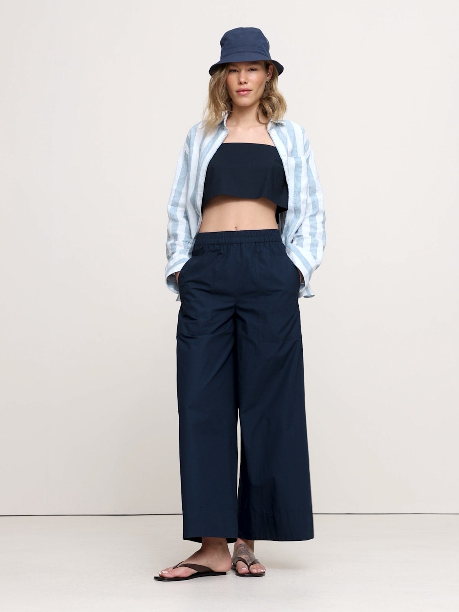 A pant designed to carry you through summer and beyond, with a wide leg and a pull-on design so it looks (and feels) really great on—in a 100% cotton poplin.