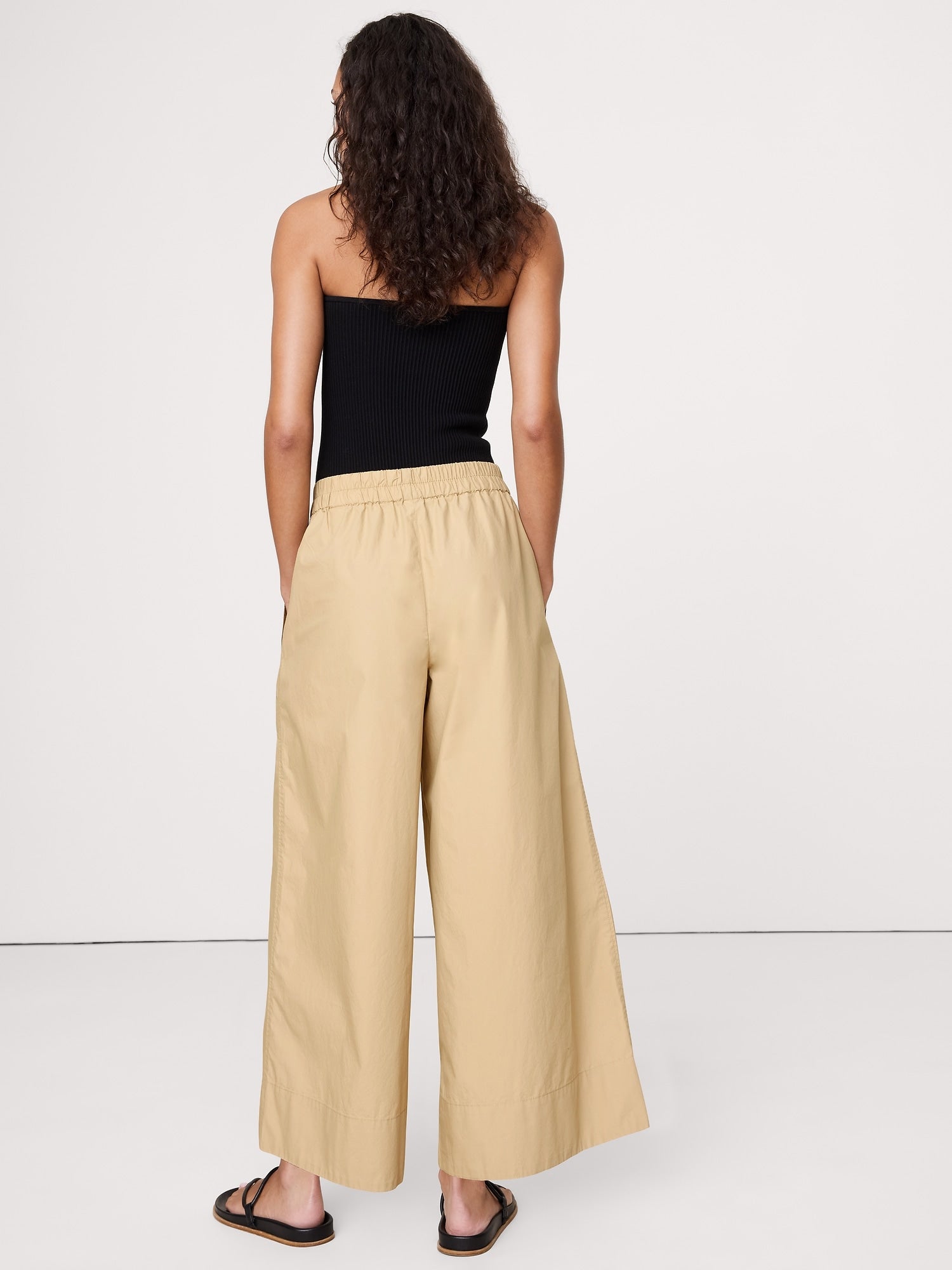 بنطال قطن بوبلين للكاحل بقصة ساق واسعة سهل الارتداء