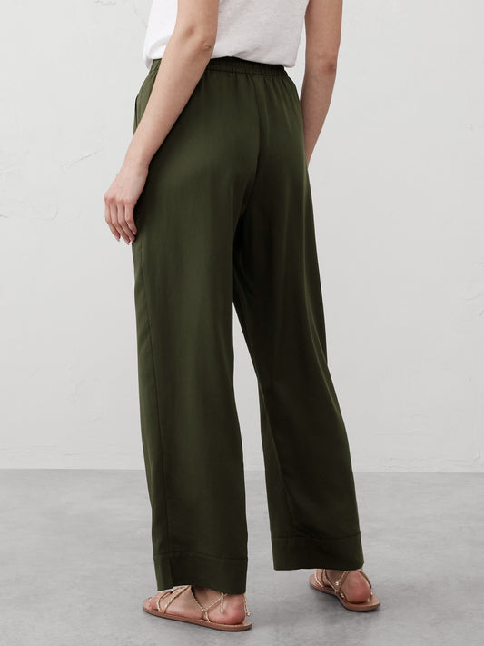 • Mid-Rise Kick-Flare Satin Ankle Pant