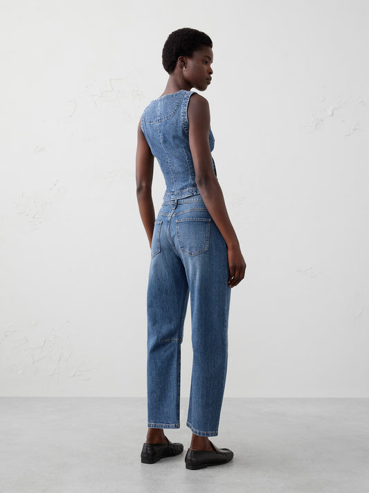 • Mid-Rise Kick-Flare Linen Ankle Pant