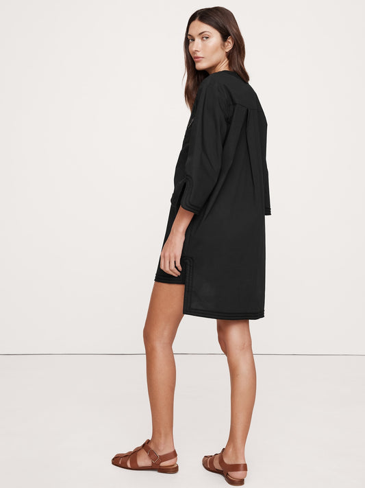 STRETCH-COTTON POPLIN PINTUCK SHIRT DRESS