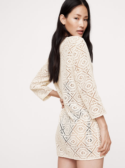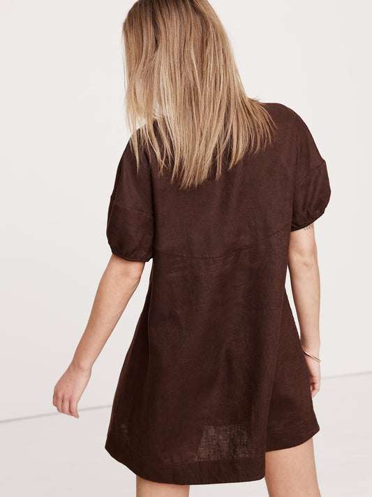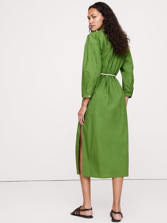 COTTON POPLIN SPLIT-NECK SHIRT DRESS