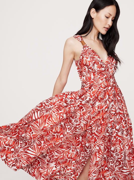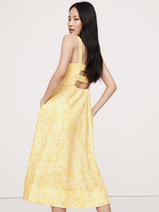 PLEATED GEORGETTE OPEN-BACK LONG MIDI DRESS