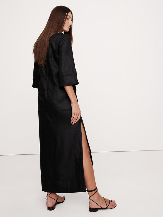 RELAXED DOUBLE-BREASTED LINEN BLAZER