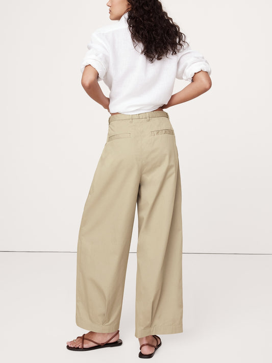 WIDE-LEG COTTON POPLIN PULL-ON ANKLE PANT