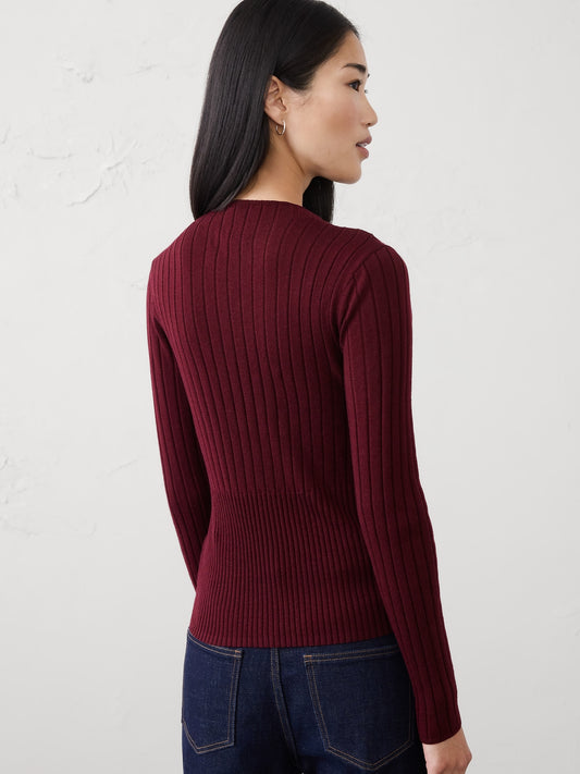 OVERSIZED MERINO-COTTON HIGH-LOW FUNNEL-NECK SWEATER
