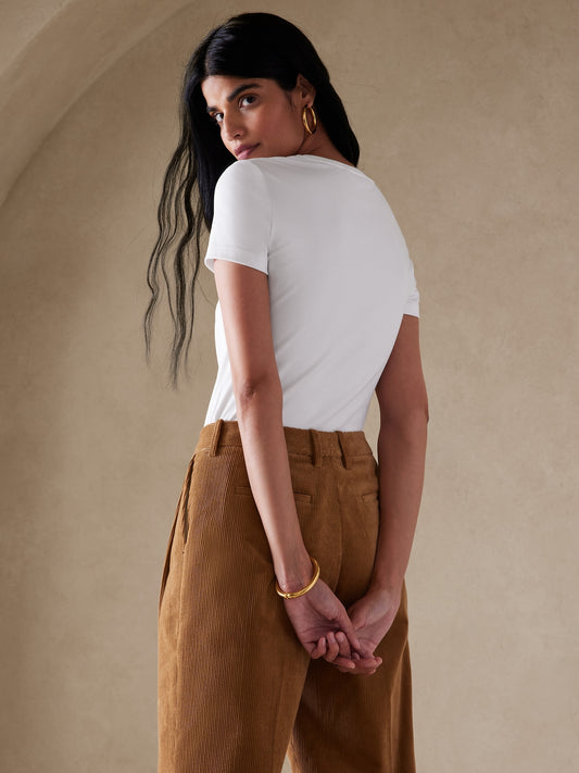 Discover Banana Republic's collection of t-shirts for women in Kuwait. Our tees are designed to be a luxurious essential, crafted from soft, high-quality fabrics that drape beautifully. From classic crewnecks to stylish V-necks and scoop-neck designs, our collection offers versatile options for every occasion. Layer them under a blazer for a polished office look, or wear them on their own for a comfortable, chic weekend style.