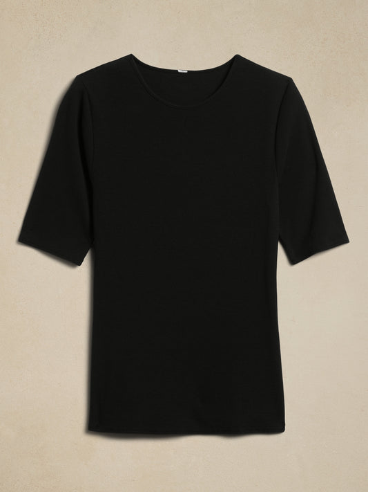 RIBBED ELBOW-SLEEVE T-SHIRT
