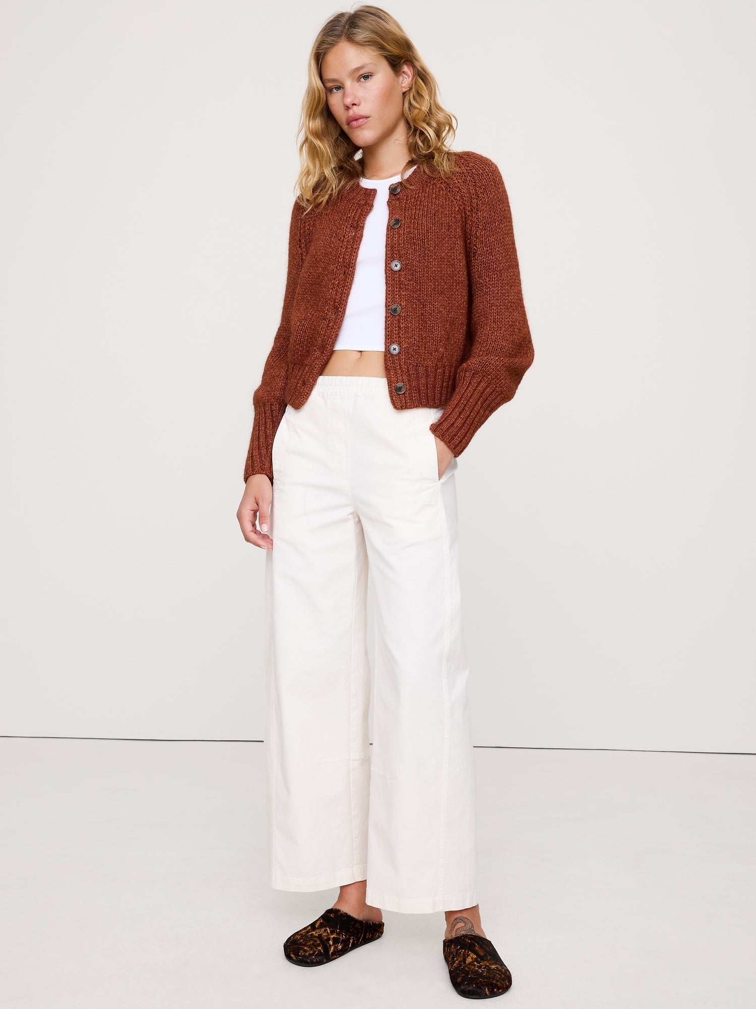 Your other cardigans will be jealous. This chunky cardigan is crafted from a soft blend of cotton, luxurious alpaca, and warm Merino wool, in a slouchy silhouette that still looks pulled-together.