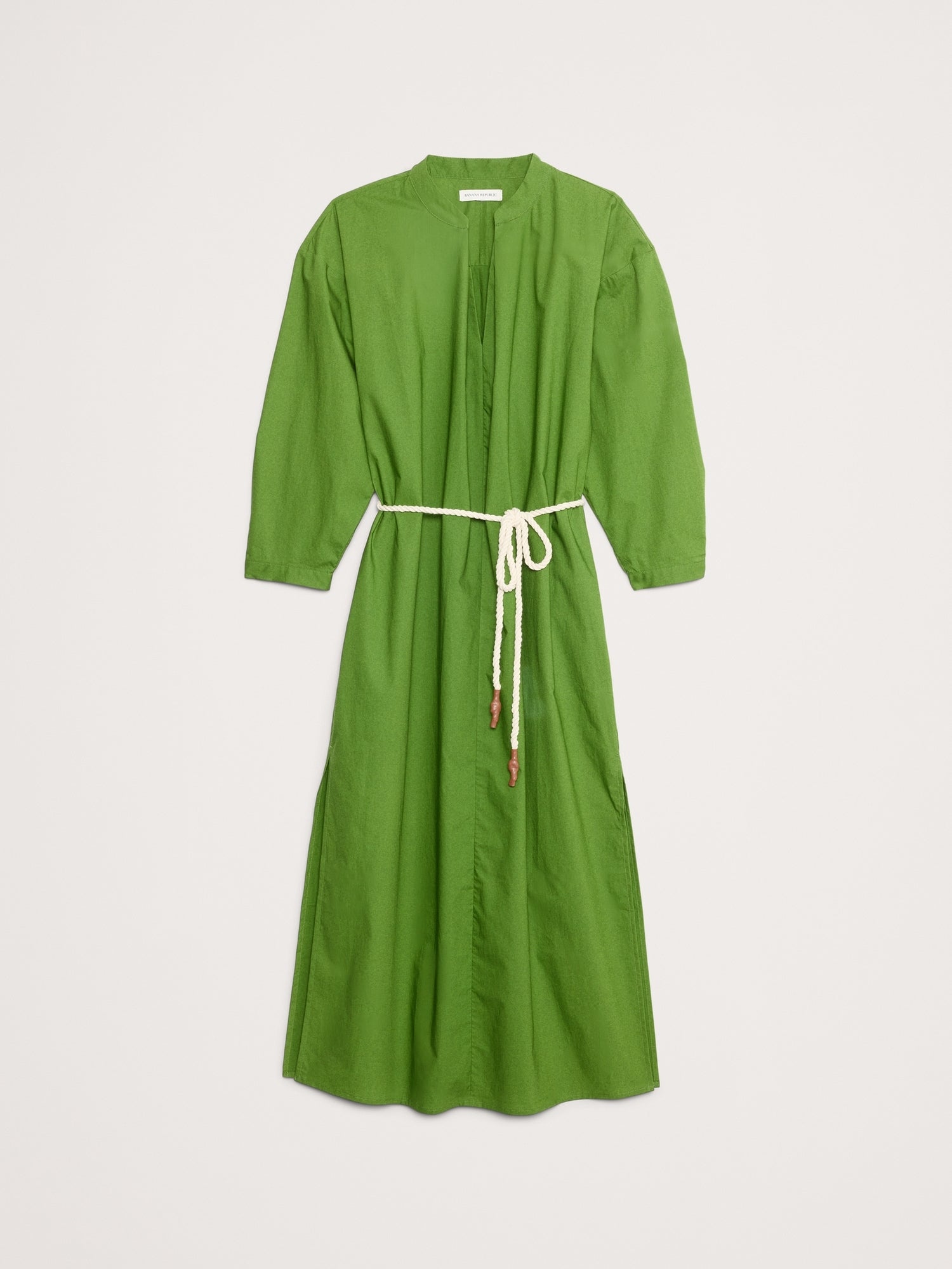 COTTON POPLIN SPLIT-NECK SHIRT DRESS
