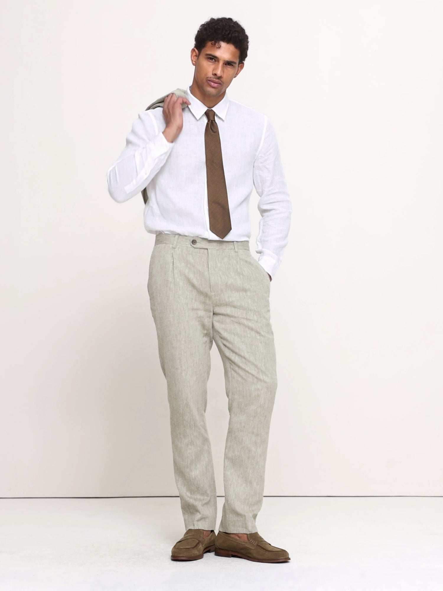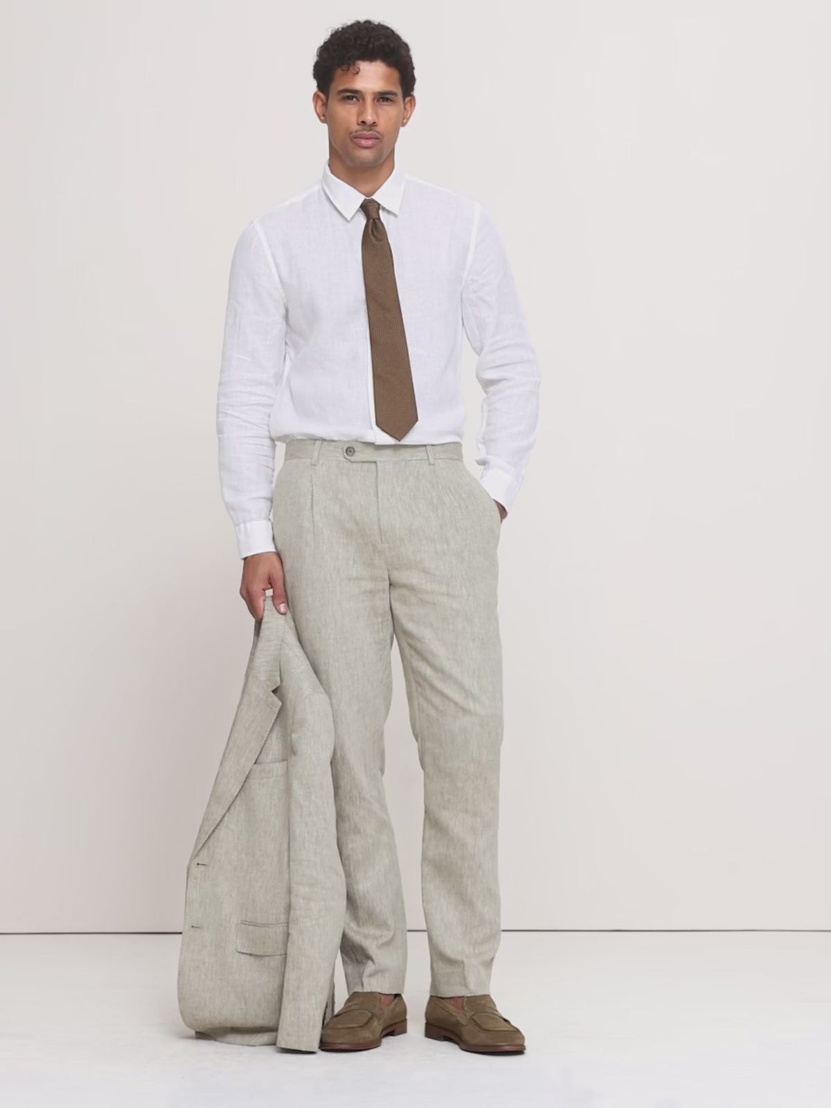 Designed with warm climates in mind, this sleek suit pant is cut from a fabric that blends together soft cotton and luxurious linen. Plus, we lined them just to knee-length so they're ideal in warmer weather (or for those who just run hot).