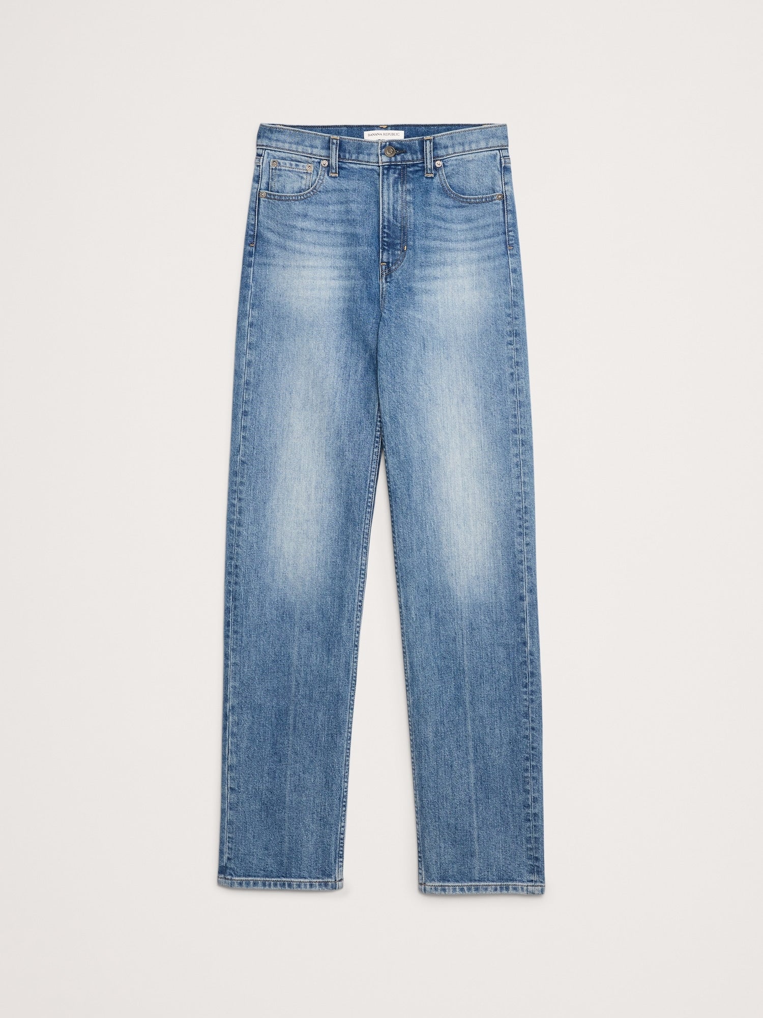A nod to the 90s. These straight-leg jeans have a high-rise and stovepipe-straight fit through the leg. Our designers selected a soft denim with stretch for comfort.