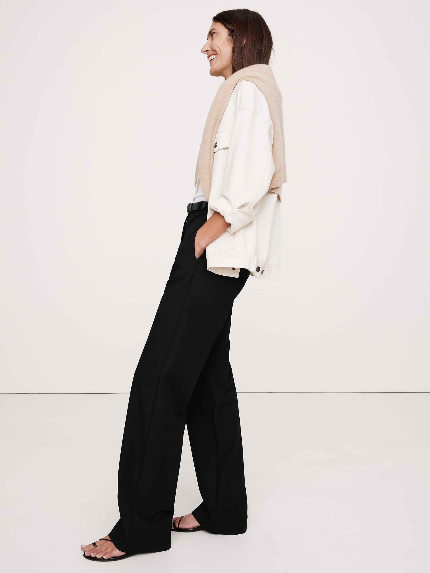 We love when a pant that looks as good as it feels, so we cut this high-rise straight pant in our best-selling Refined Bi-Stretch—a favorite for its stretchy feel and soft structure. Look closely: our designers chose a Hollywood waistband and darts at the back waist to create a high-rise with clean lines.