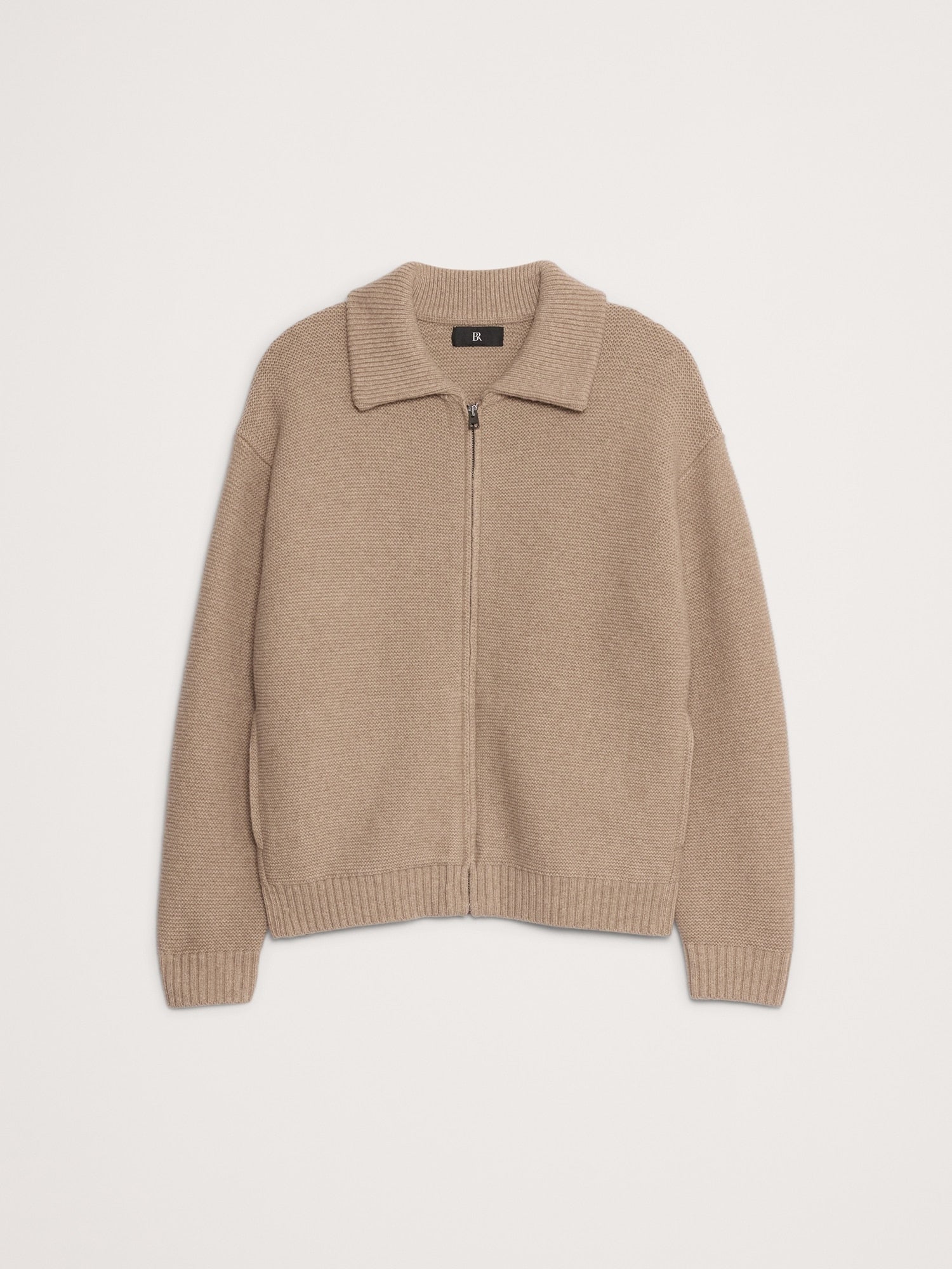 An easy layer for cooler months, we crafted this sweater jacket with a horizontal ribbed stitch from one of our favorite Merino wool-blends from Italy.