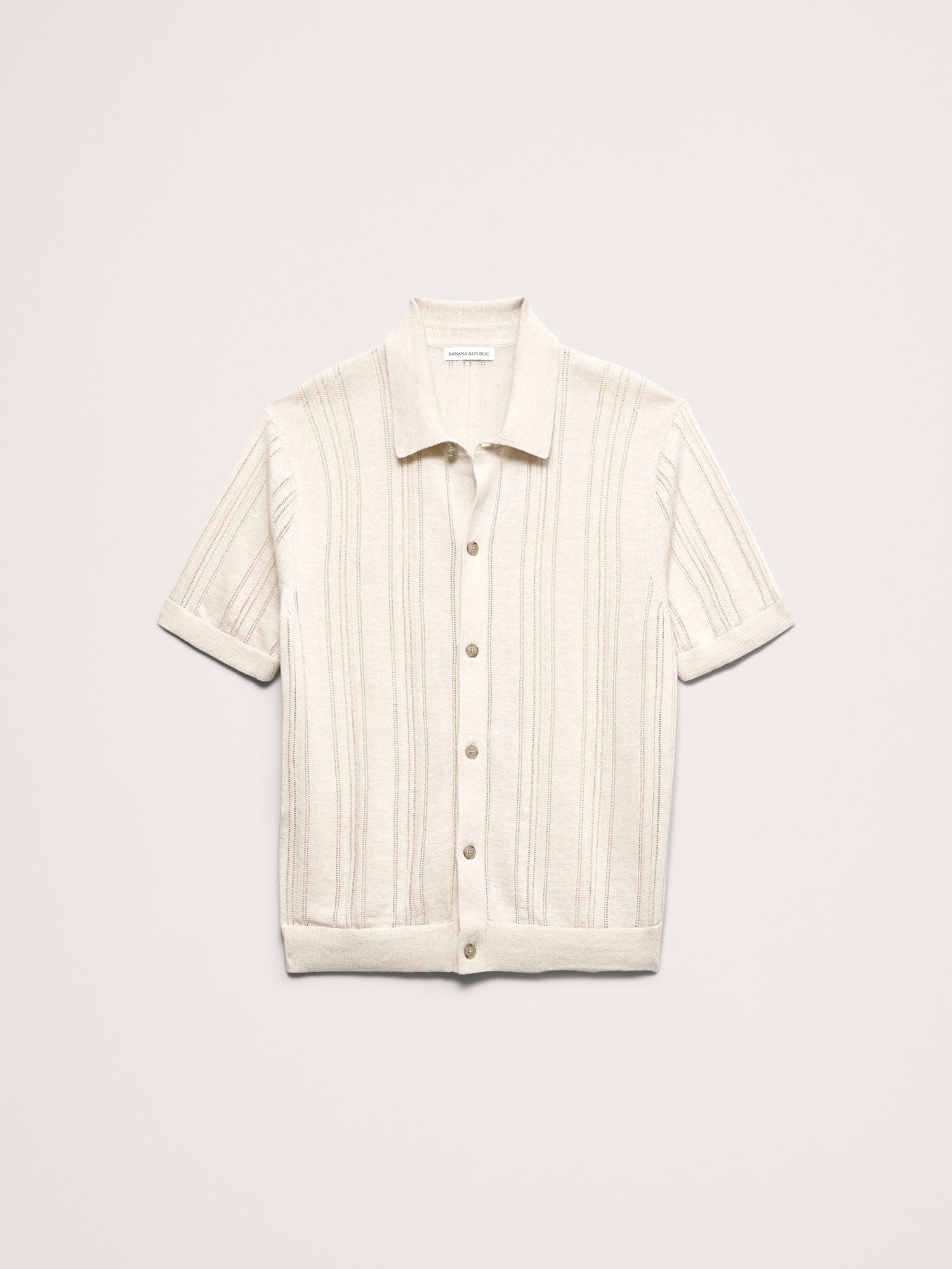 Look closely: we used a mix of stitches to create delicate, pointelle stripes for this retro-inspired sweater polo. For fabric, we reached for a favorite linen and cotton blend so it's perfect for warm weather.
