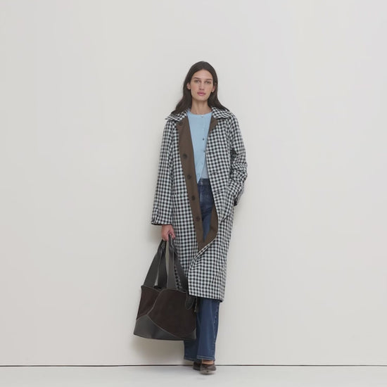 Our take on the classic car coat, in a fully reversible construction so you can switch between solid brown and classic gingham. Cut with room to layer, we selected a softly structured cotton twill fabric that looks crisp and clean in all seasons.