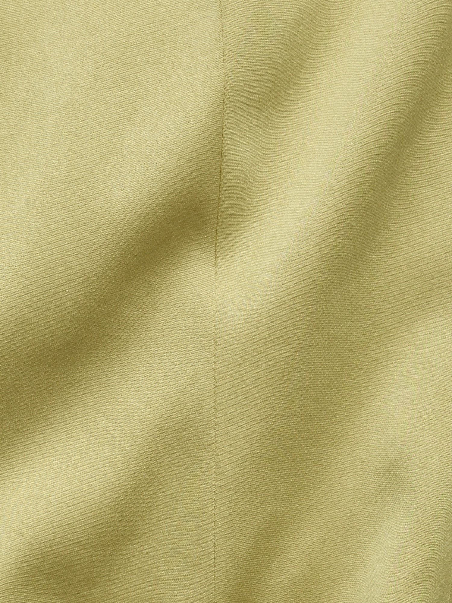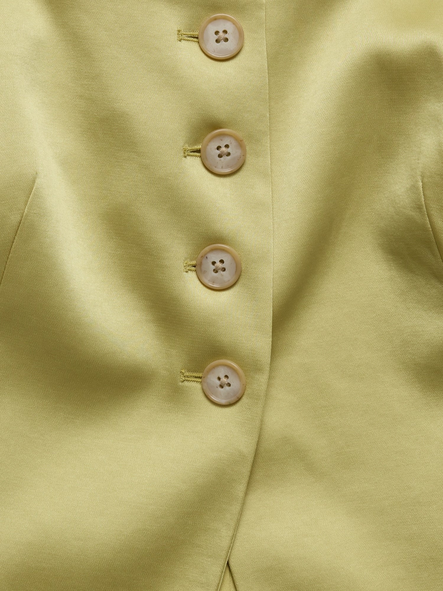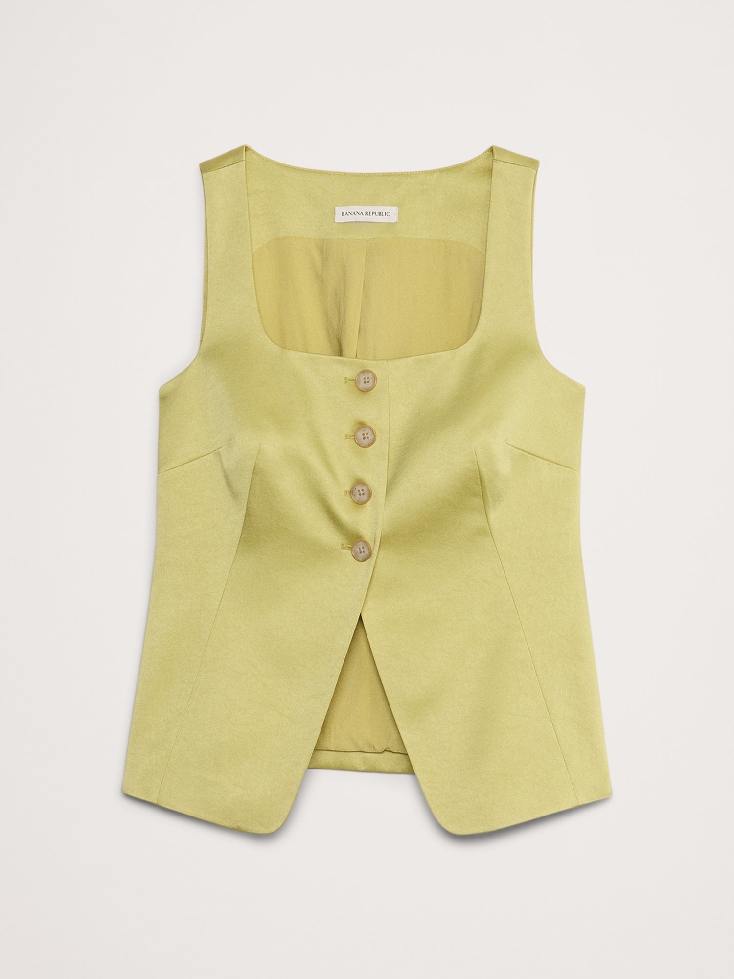We cut this square-neck vest in a longer length with a square neckline, in a soft satin fabric. Make it a set with the matching kick-flare pant.