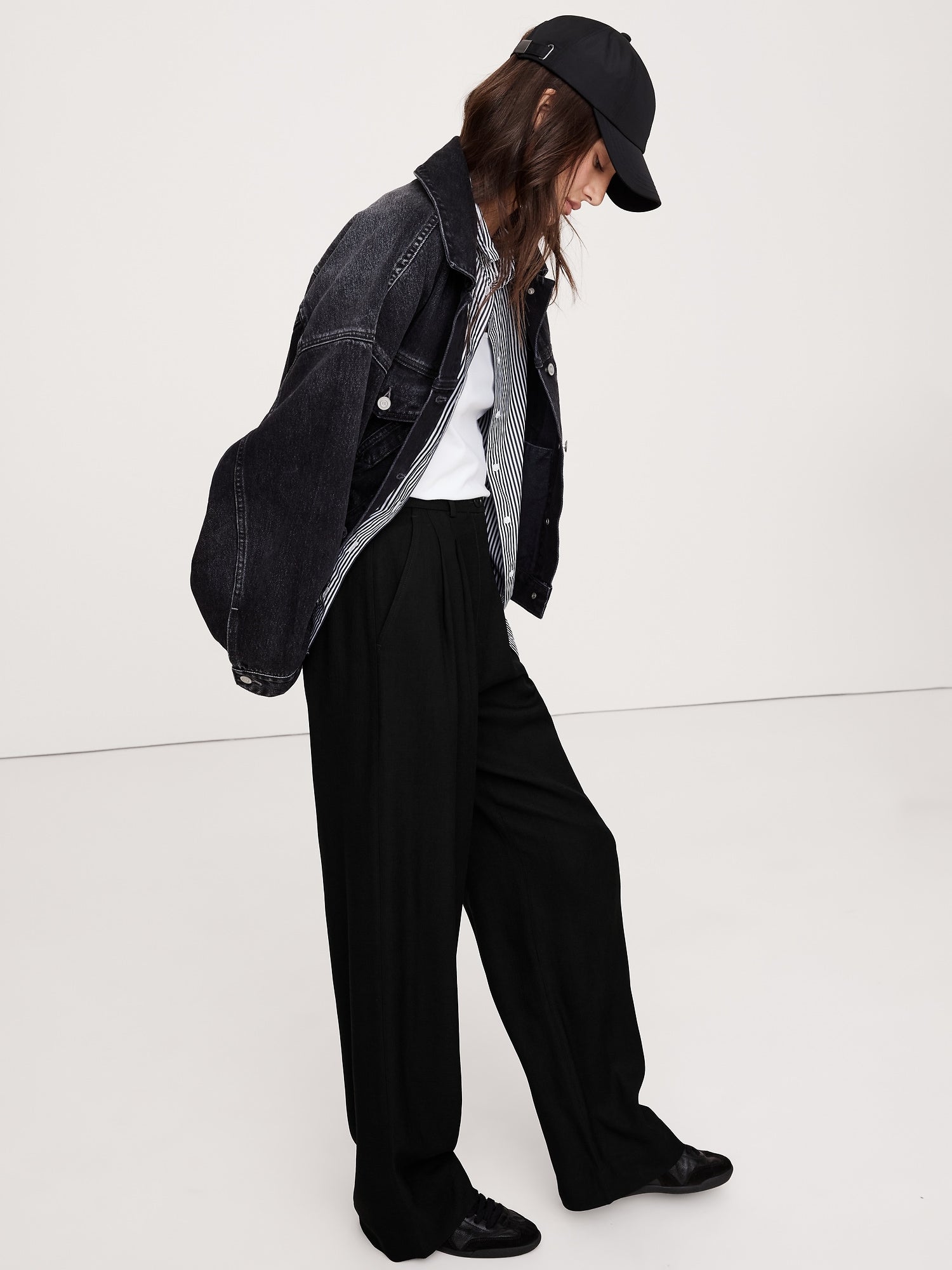 Meet the high-rise pants we can't stop wearing. We cut these wide-leg pants with a double-pleated front from our premium drapey twillâ€â€a fabric we love because it strikes the perfect balance between tailored and casual-cool.