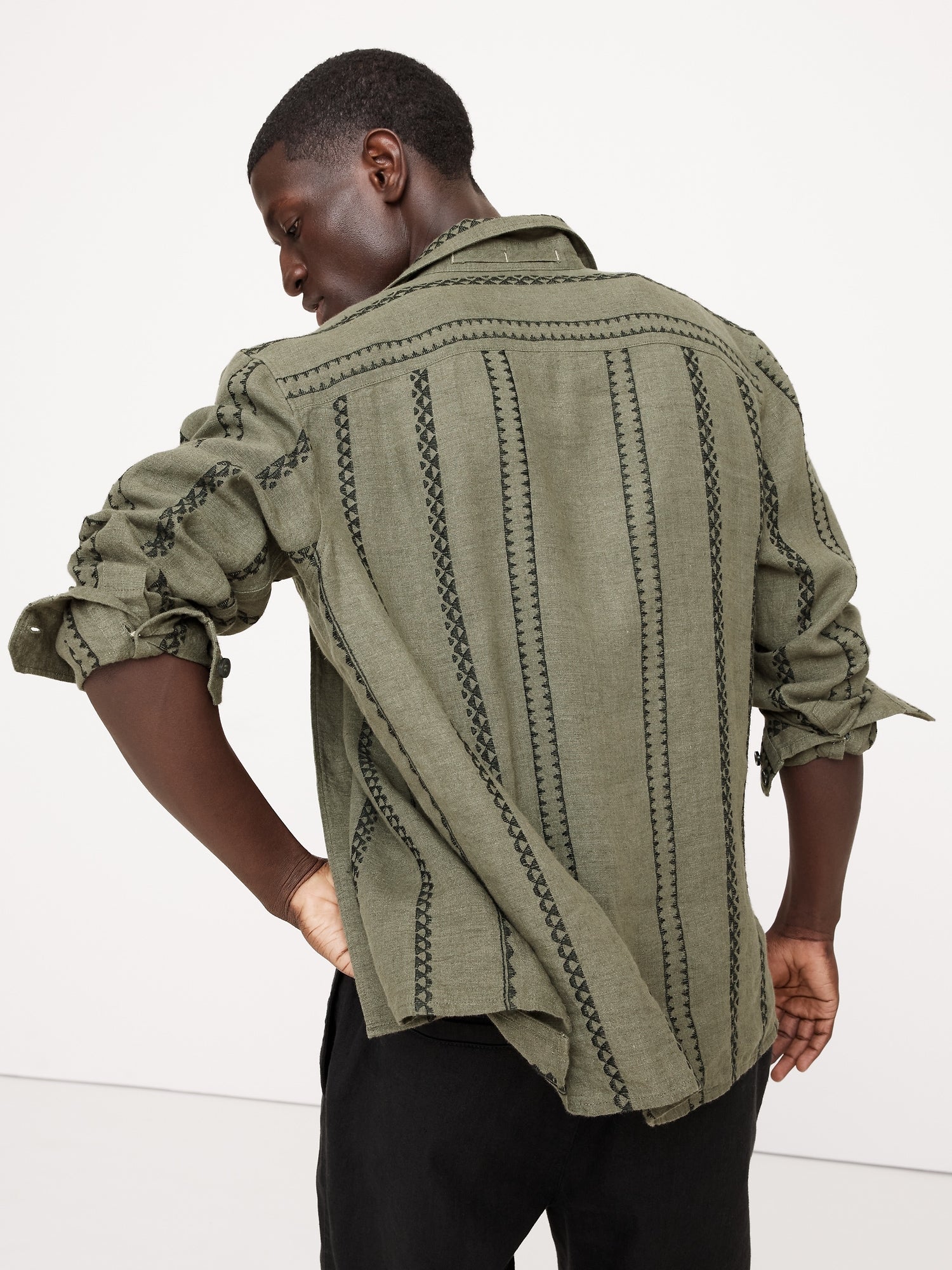 STANDARD-FIT EMBROIDERED LINEN LONG-SLEEVE RESORT SHIRT