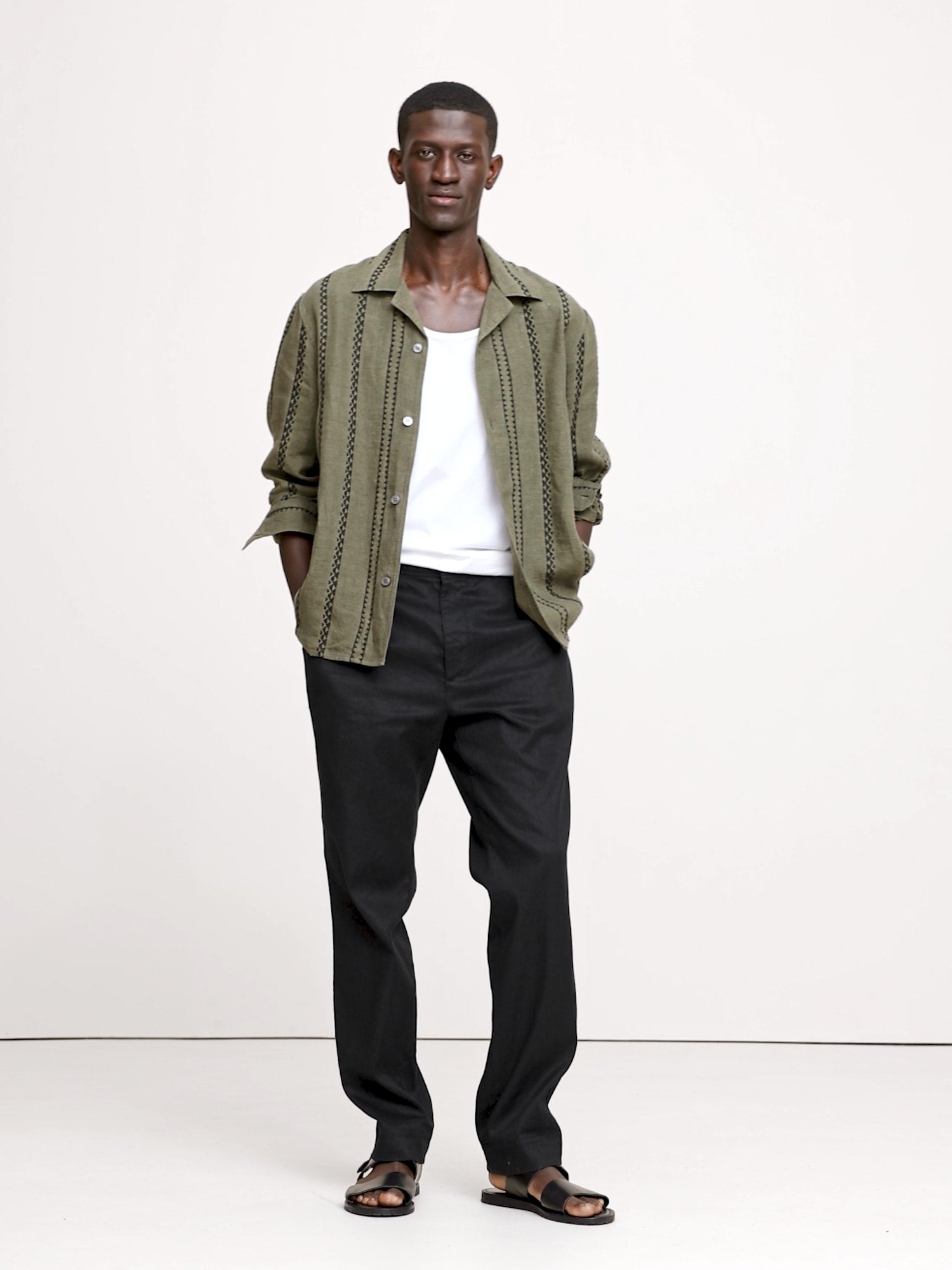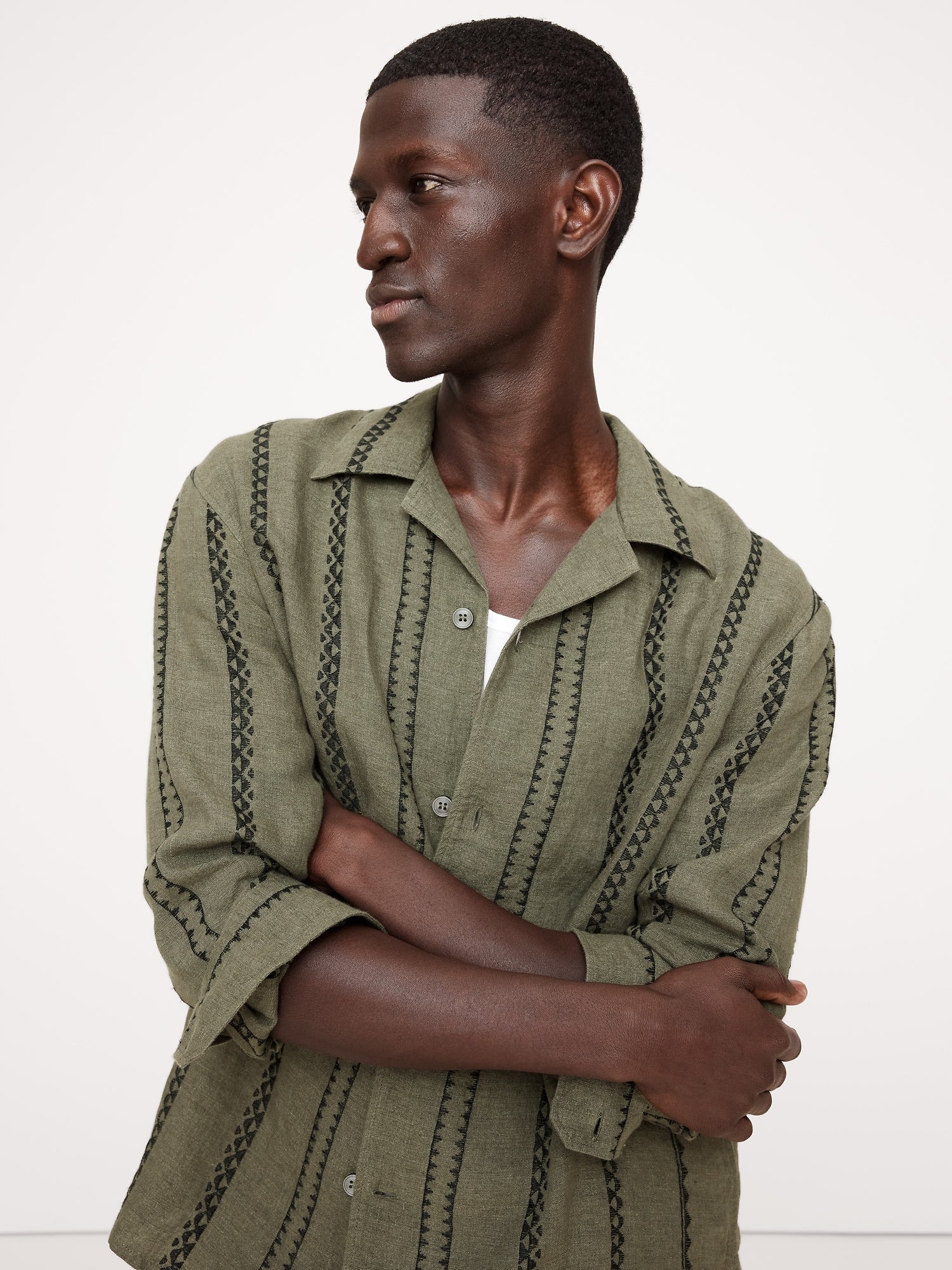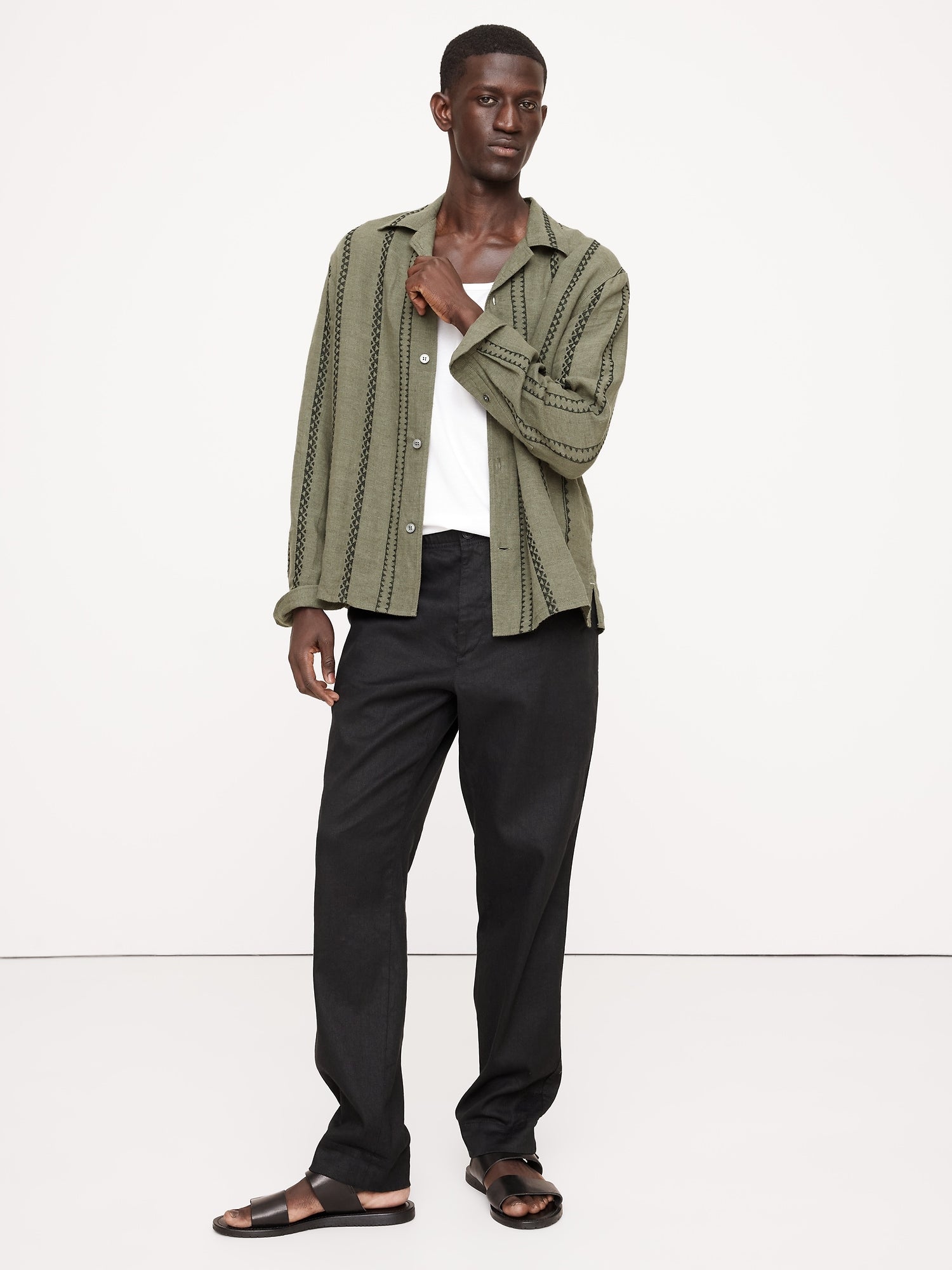 Our long-sleeve take on the season's resort shirt, with embroidered accents for a vintage vibe. Made from 100% certified-European linen.