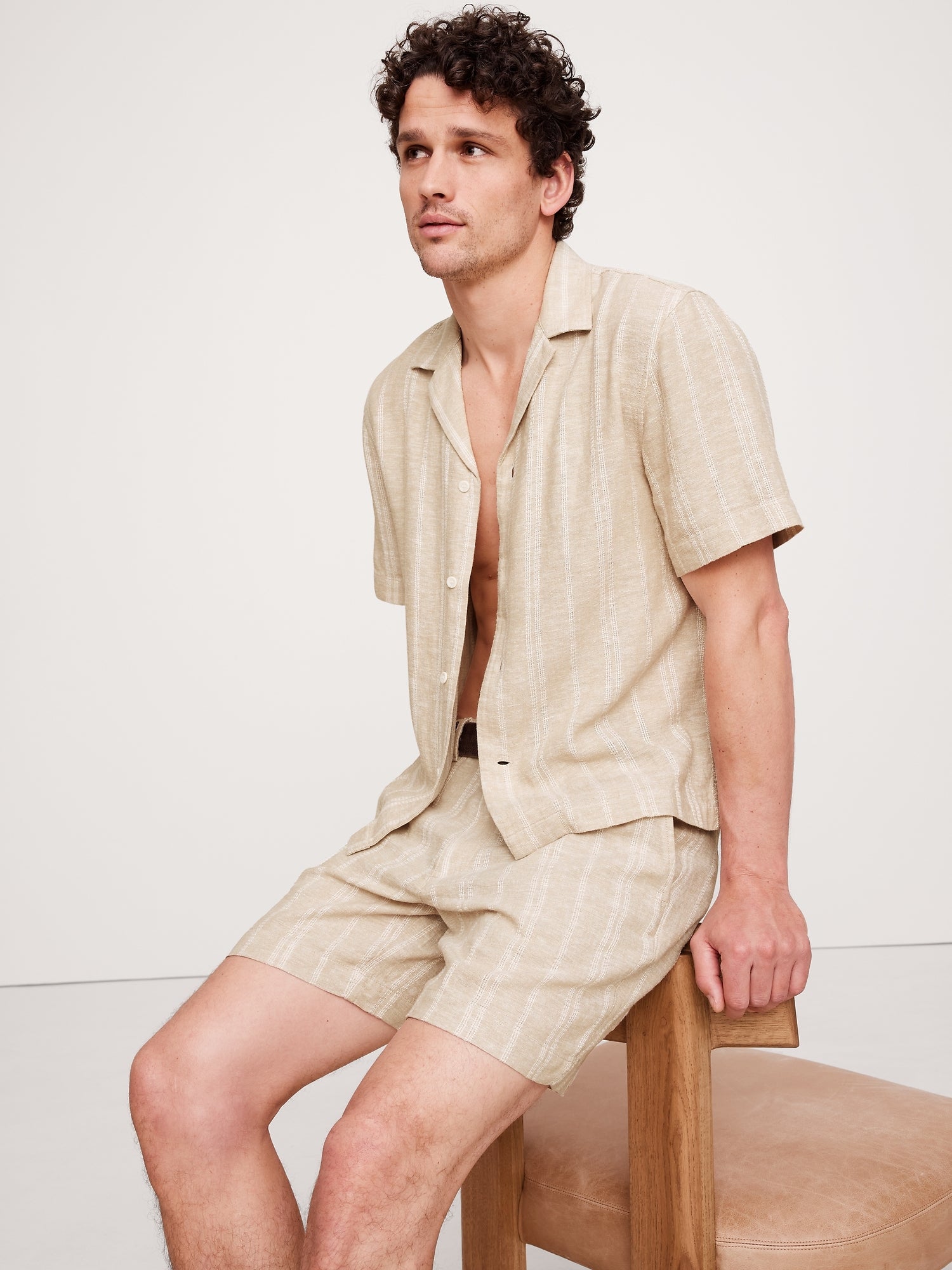 Cut in an on-trend shorter length, this easy resort shirt is crafted from premium linen and viscoseâ€â€an ideal choice for hot, humid weather. Pair with the matching short to make it a set.